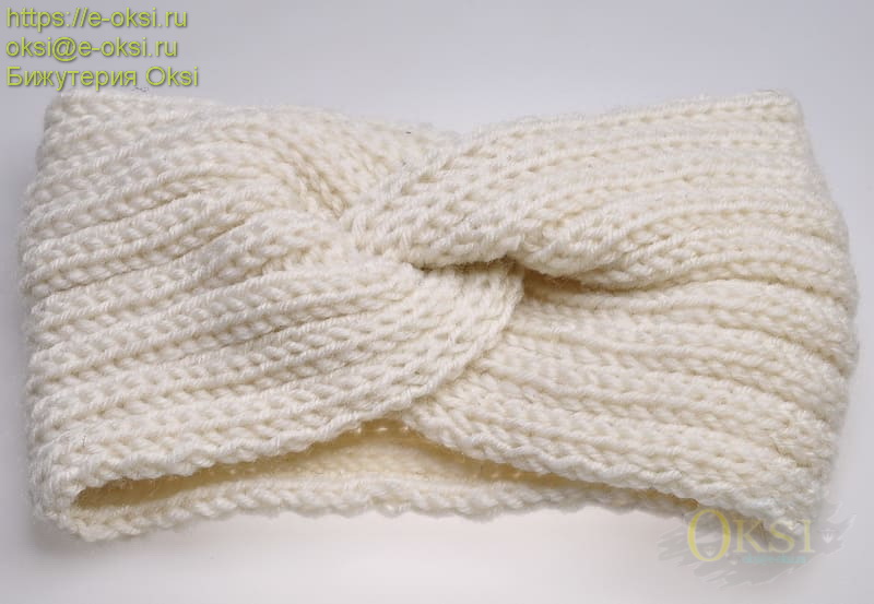 Вязанный ,тёплый аксессуар для волос ''Чалма'' молочного оттенка . Длина аксессуара в нерастянутом виде 45 см., ( растягивается до 56 см). Ширина в нерастянутом состоянии 12 см.
