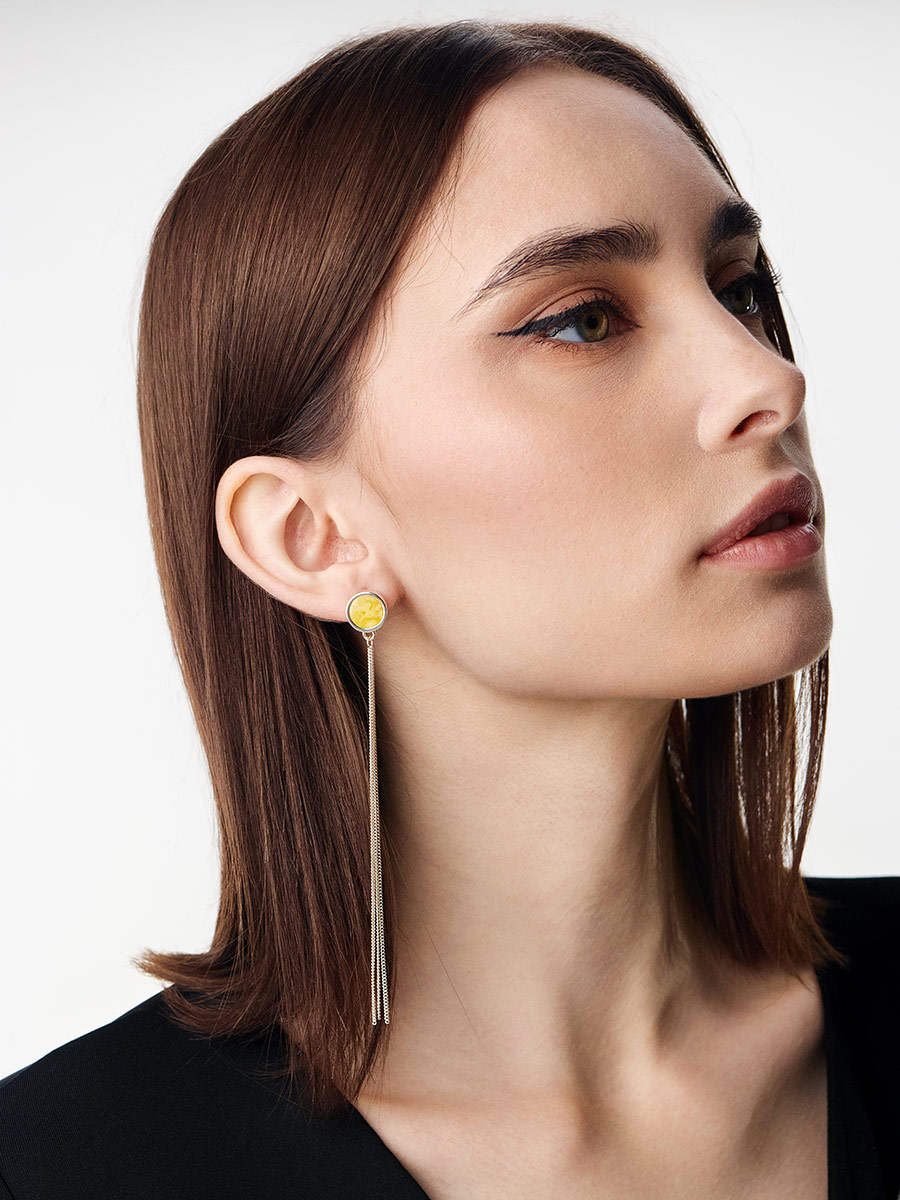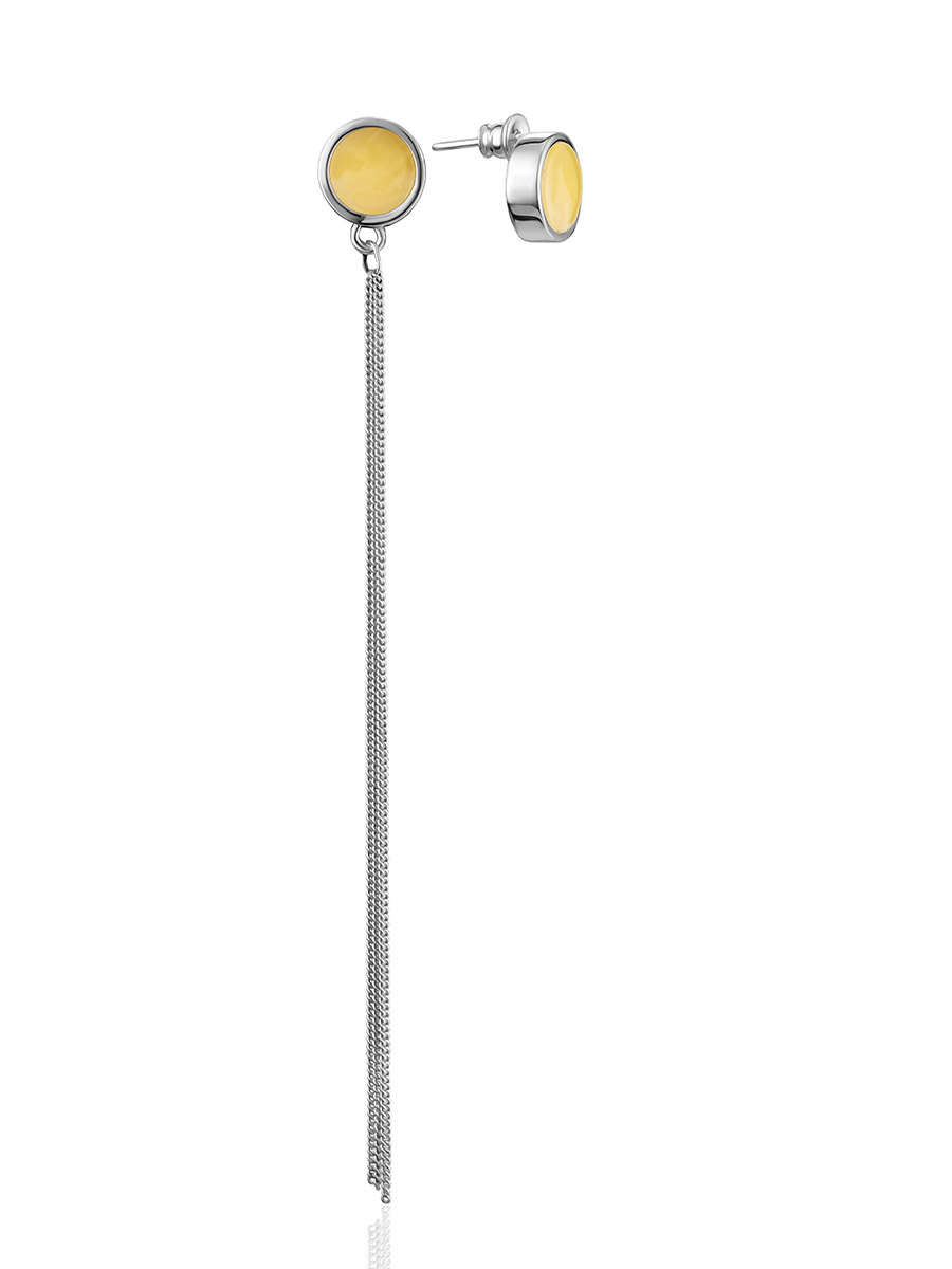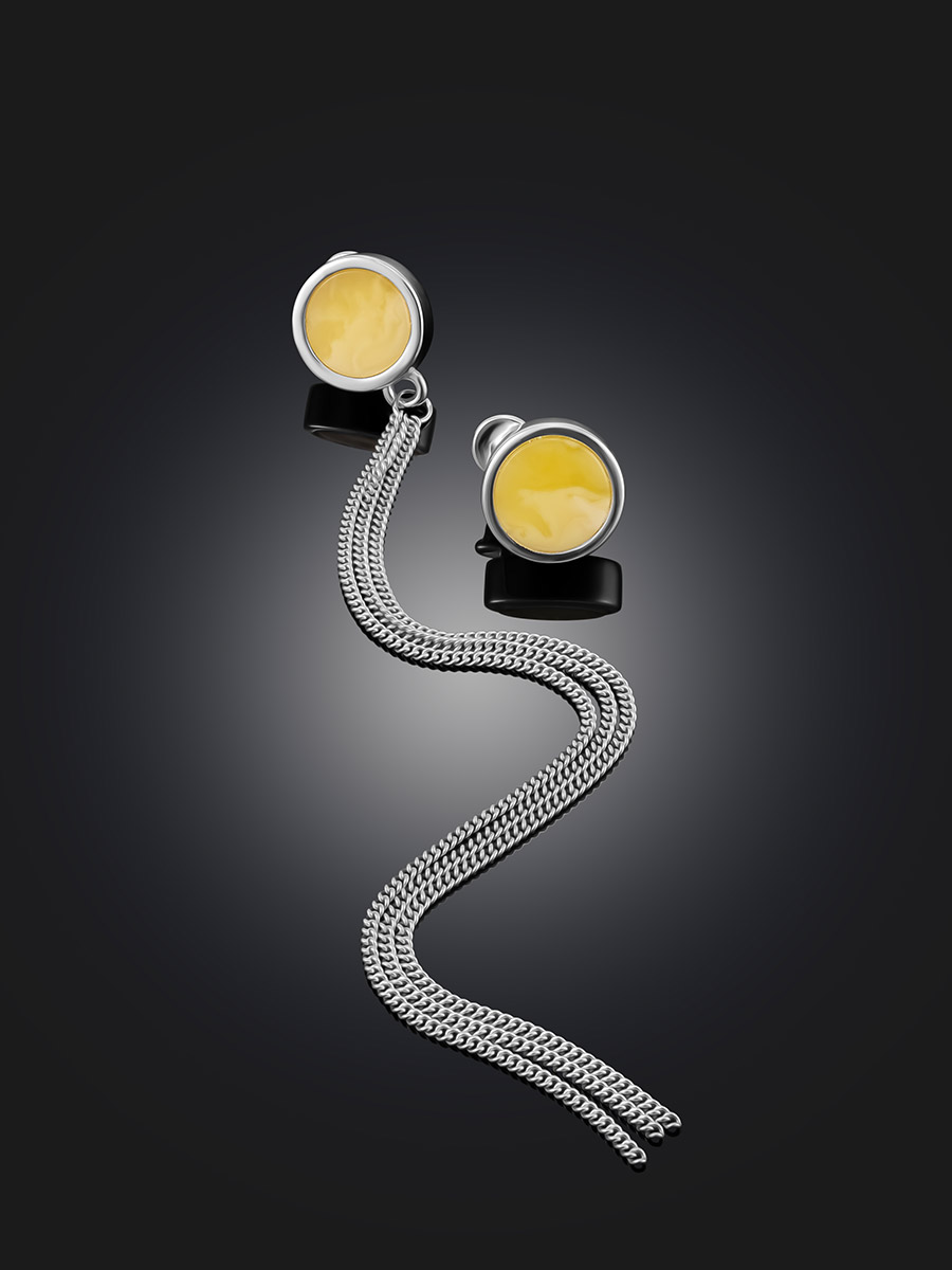 Асимметричные серьги Palazzo с янтарём и кистью из цепочек