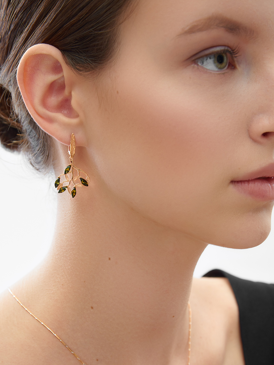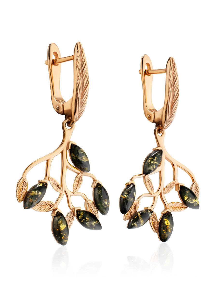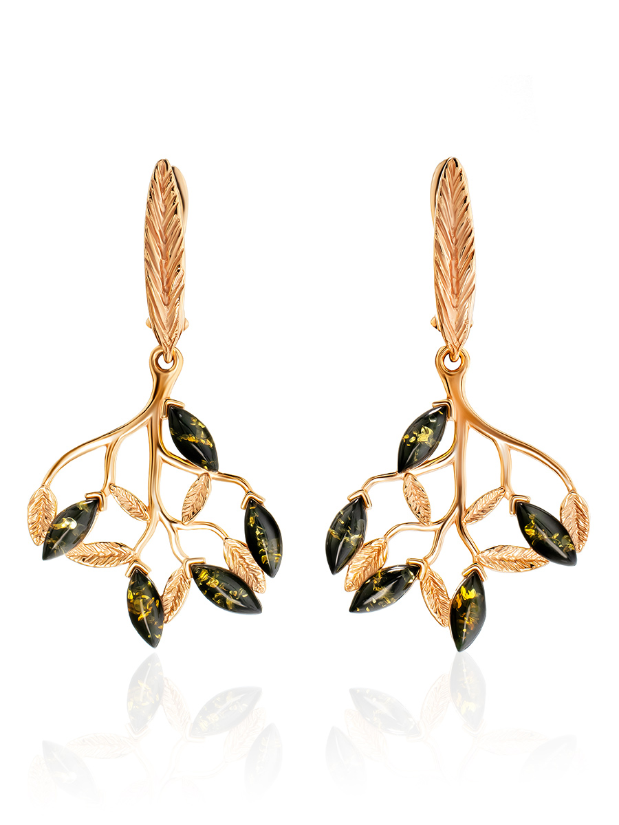 Ажурные серьги «Тропиканка» из зелёного янтаря