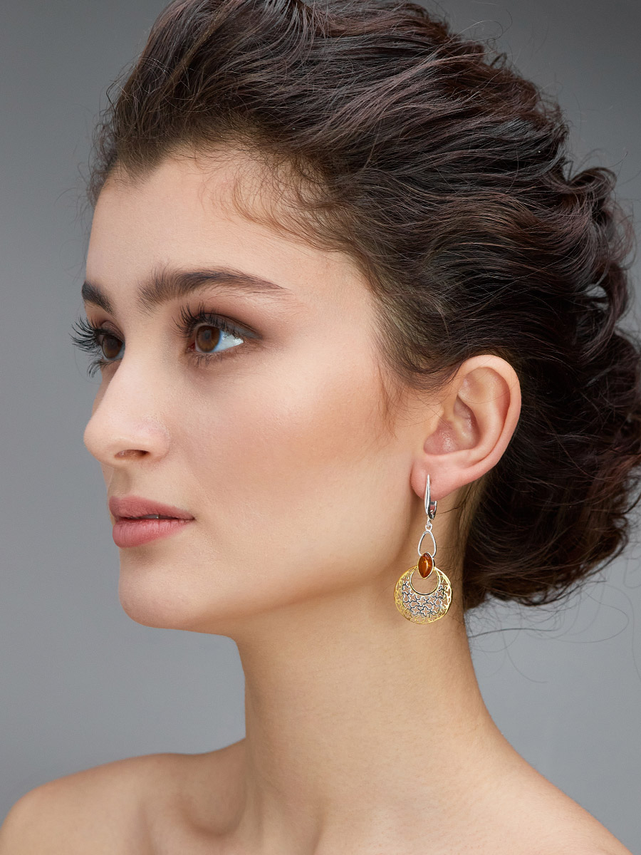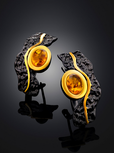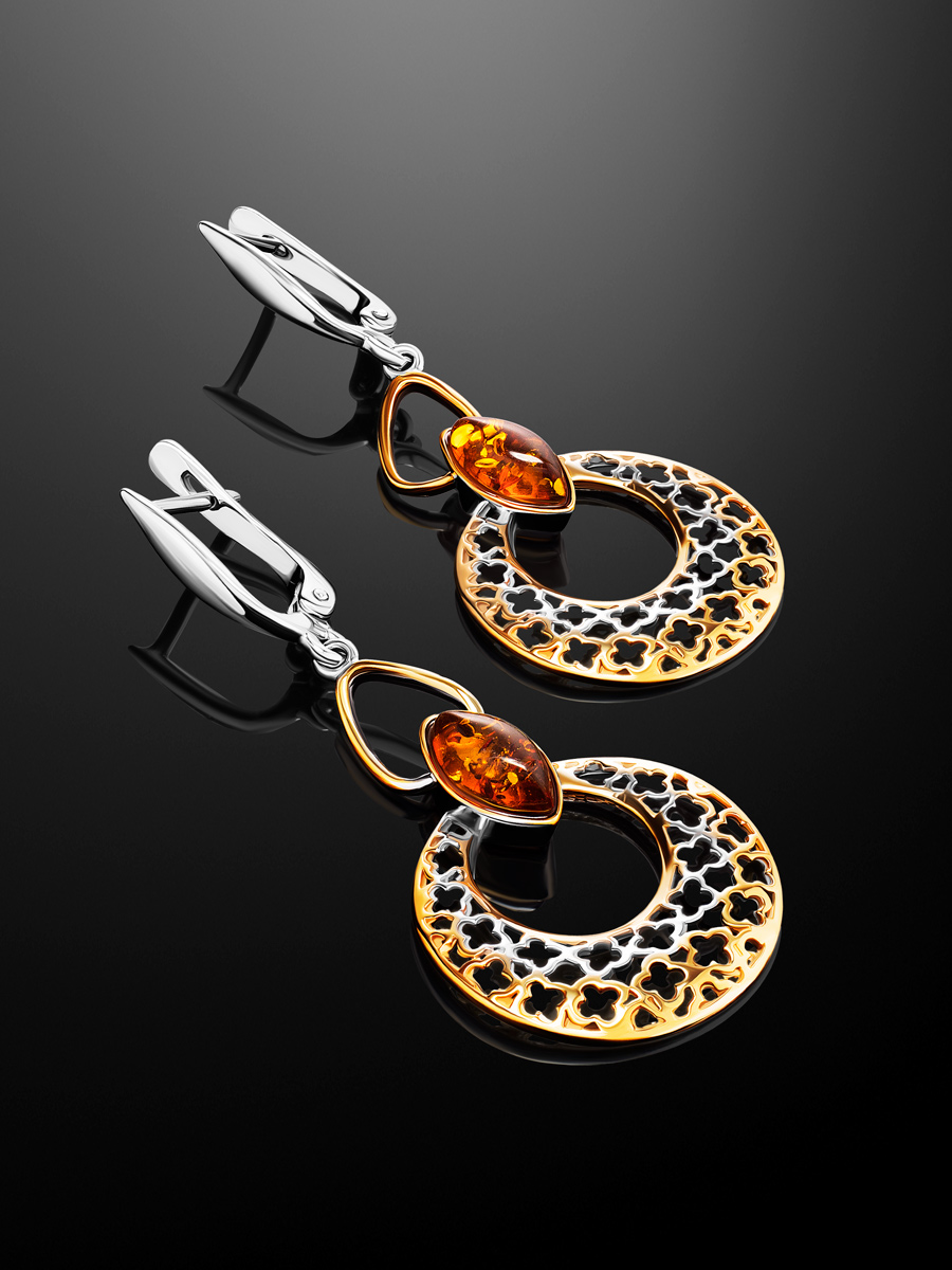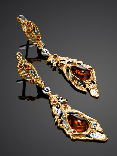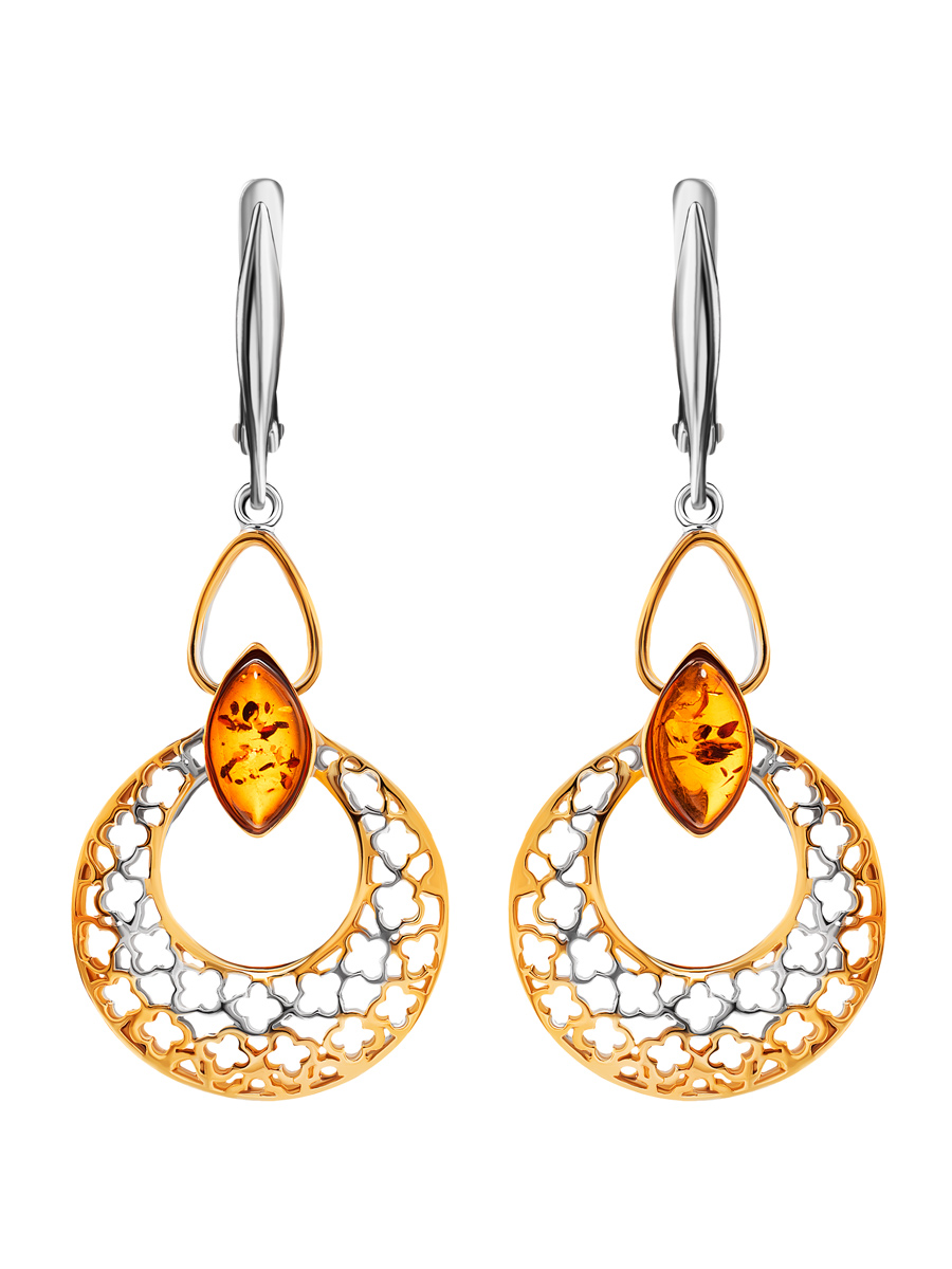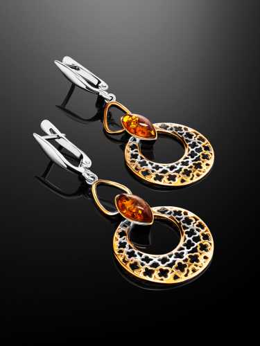 Ажурные серьги в восточном дизайне с янтарём «Согдиана»