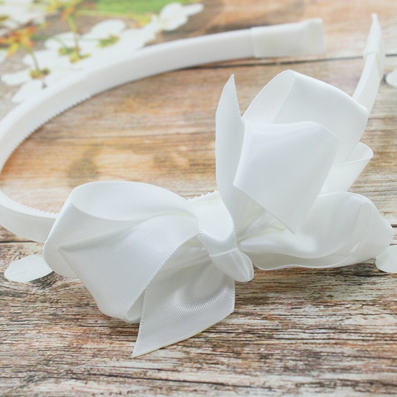 Красивый белый ободок с белым бантом поможет закончит Ваш образ. Надежный, легкий, прочный и удобный сохранит Ваши волосы и прекрасно сформирует и удержит прическу.