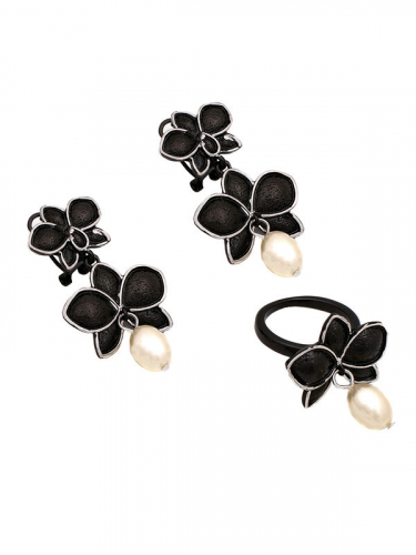 Искусственный жемчуг, латунь. Гальваническое покрытие: черненый родий.
