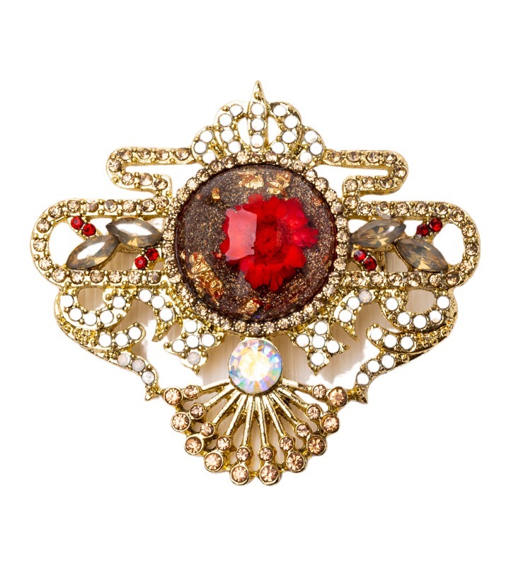 Ювелирная смола, кристаллы Preciosa, латунь. Гальваническое покрытие: золото.
