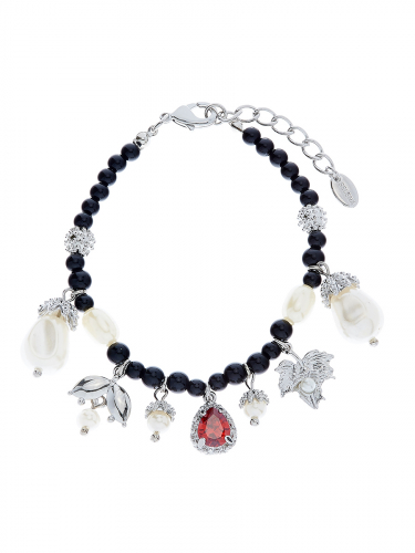 Сердолик, искусственный жемчуг, эмаль, латунь. Гальваническое покрытие: золото.