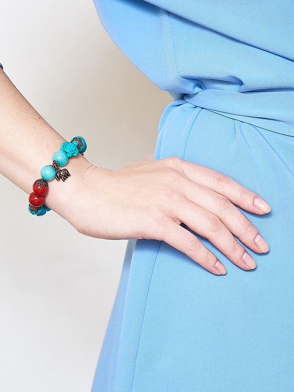 Бирюза, кварцит, латунь. Гальваническое покрытие: золото antique.