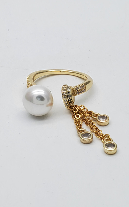 Цирконы, жемчуг Майорка, ювелирный сплав. Гальваническое покрытие: золото.