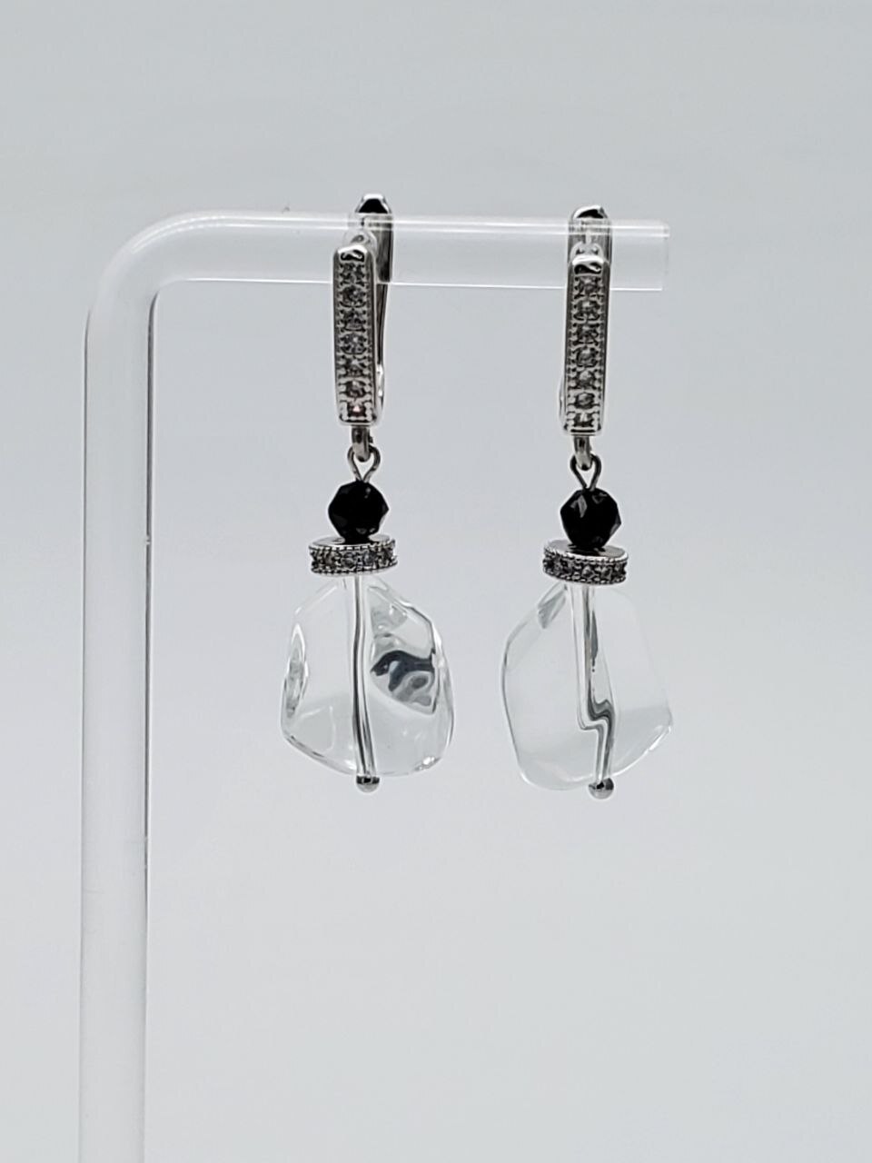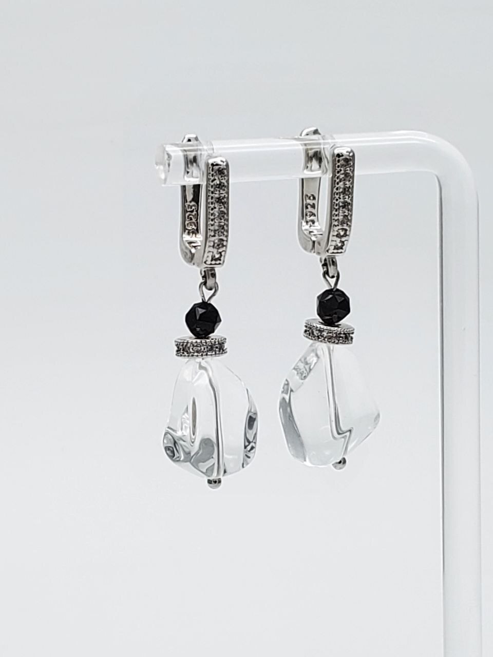 Размер: Длина серег с учетом швенз 3,9 см, ширина 12 мм. Кварц 14*12 мм, оникс 4мм.