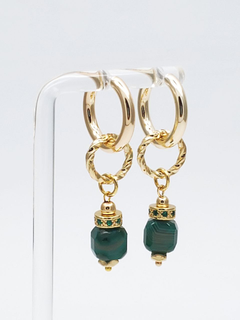 Агат природный зеленый, ювелирный сплав. Гальваническое покрытие: золото.