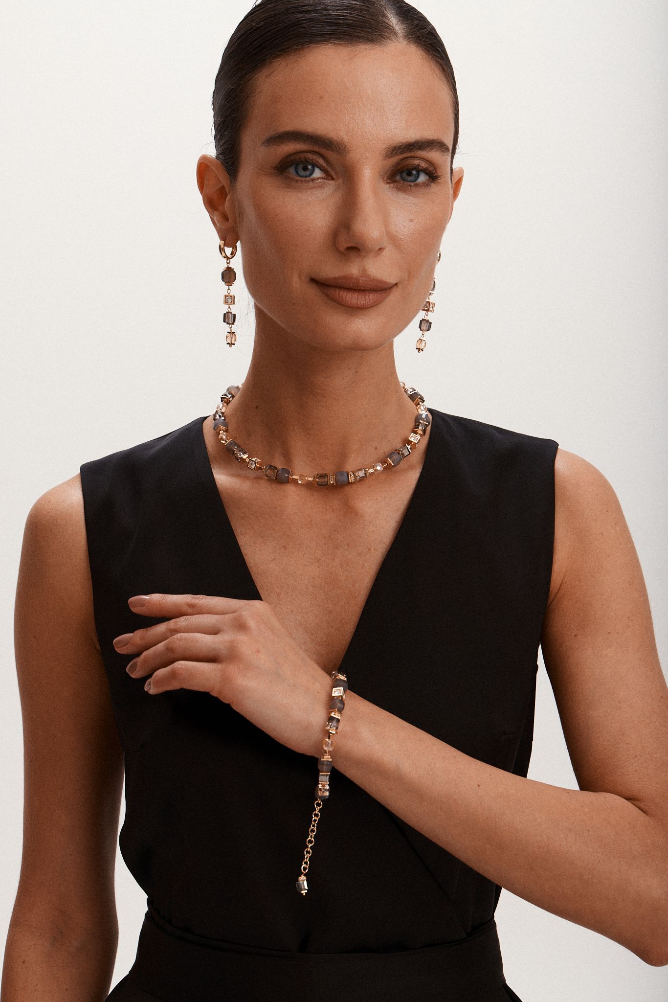 Хрустальное стекло, циркон, дымчатый кварц, гематит, ювелирный сплав. Гальваническое покрытие: золото.