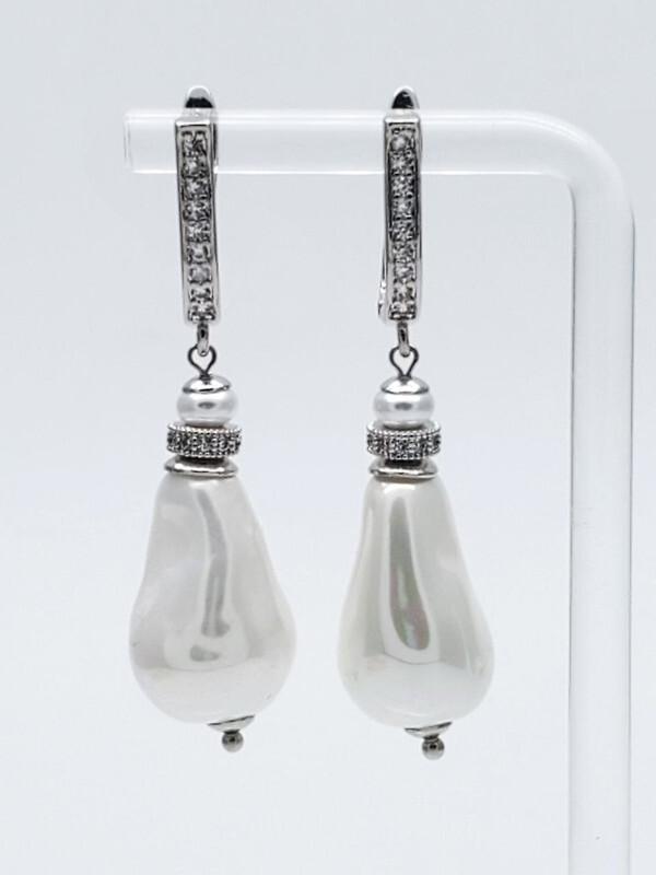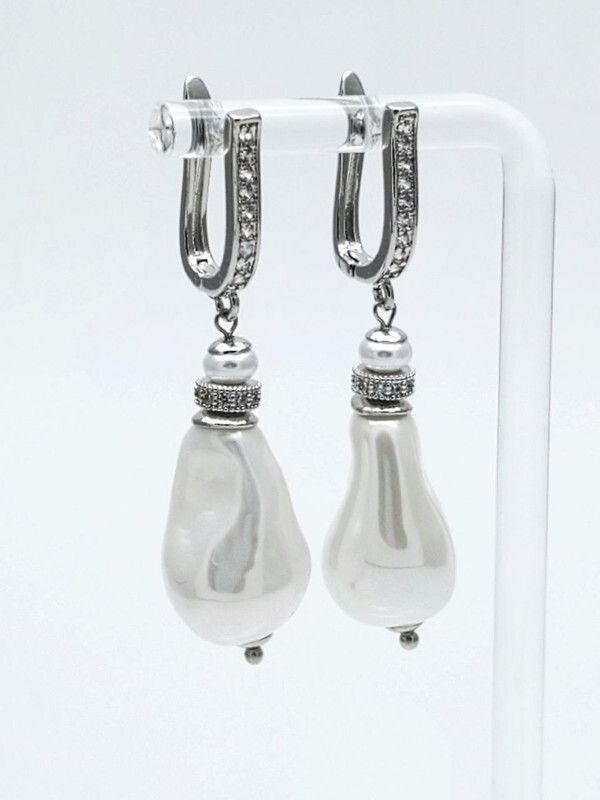 Размер: Длина серег с учетом швенз 5 см. Жемчуг Майорка барочный 16*21 мм.