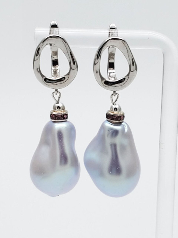 Размер: Длина серег с учетом швенз 4,3 см. Жемчуг Майорка 15*20 мм.