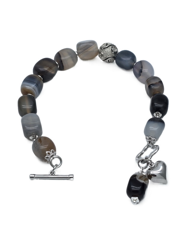 Ботсванский агат, ювелирный сплав. Гальваническое покрытие: родий.