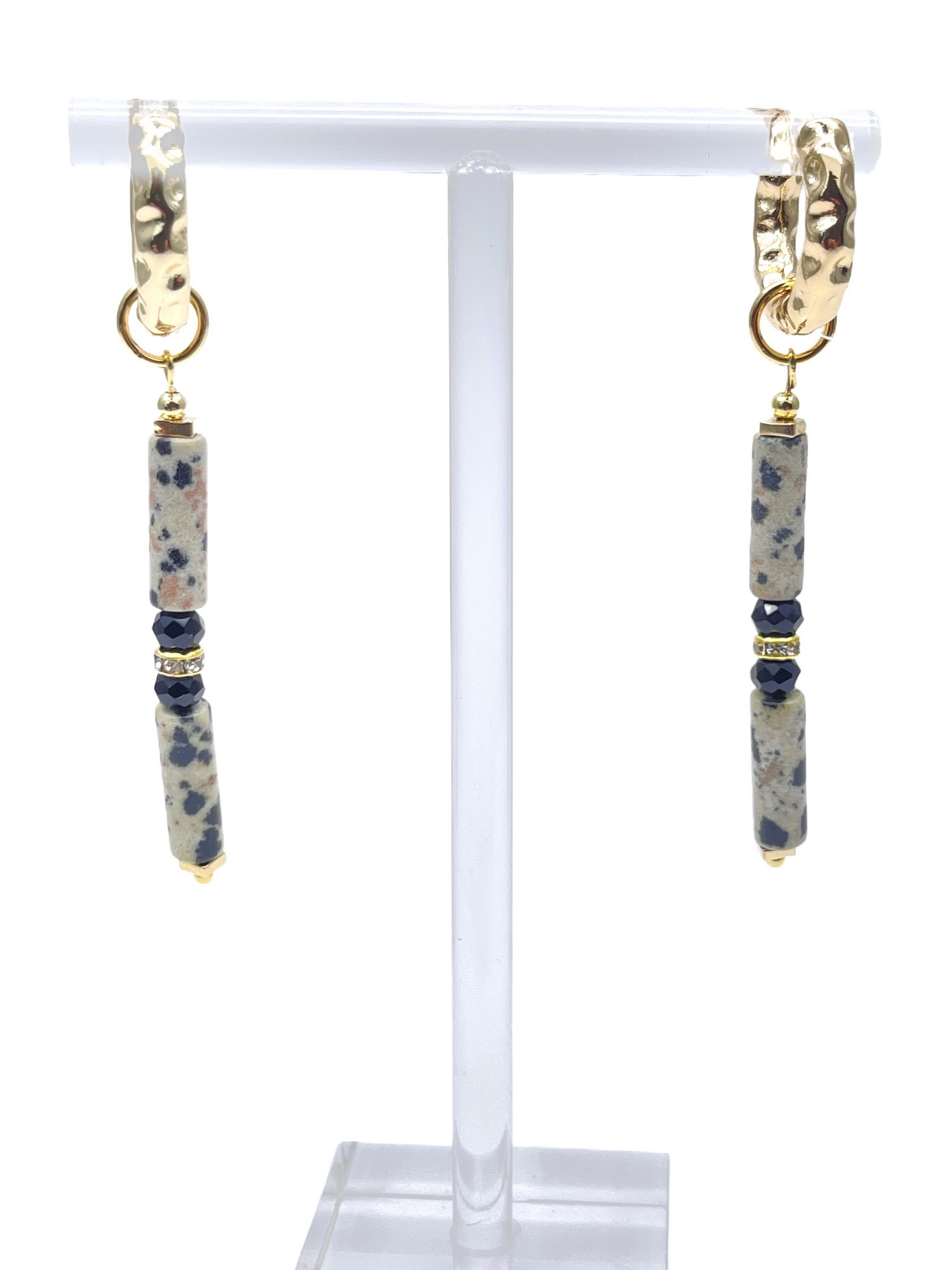 Далматиновая яшма, хрусталь, ювелирный сплав. Гальваническое покрытие: золото.