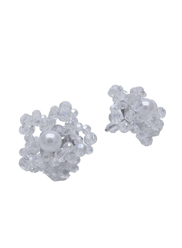 Хрустальное стекло, жемчуг Майорка, ювелирный сплав. Гальваническое покрытие: родий.