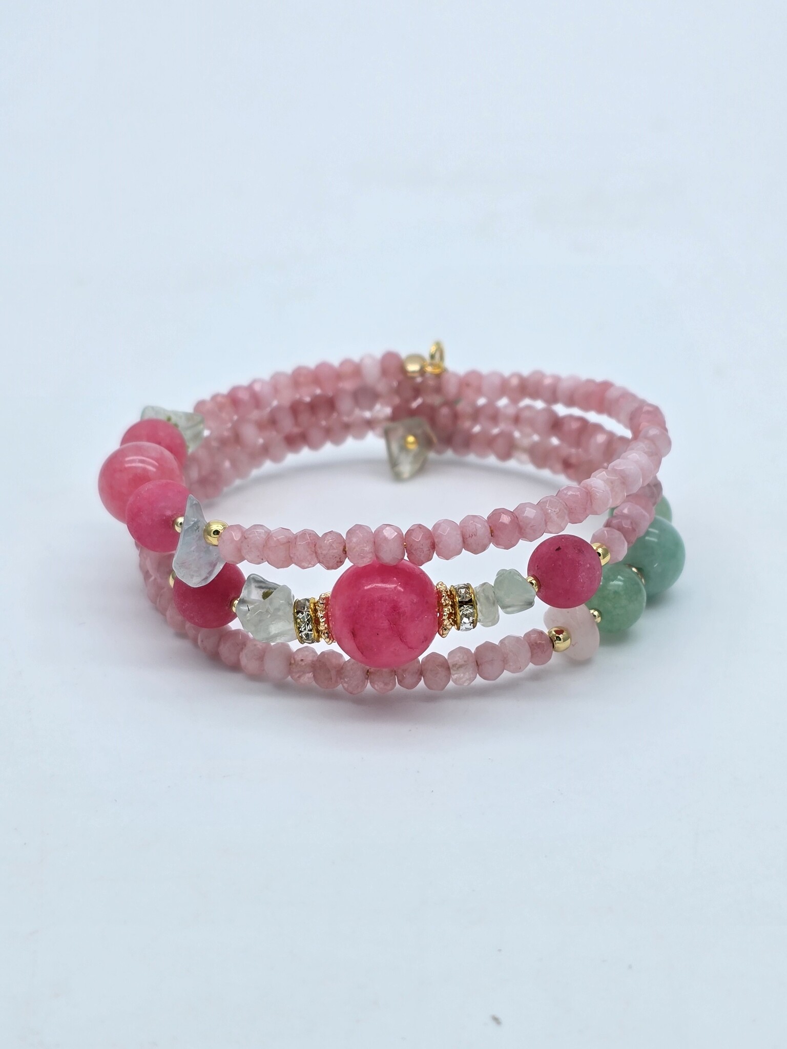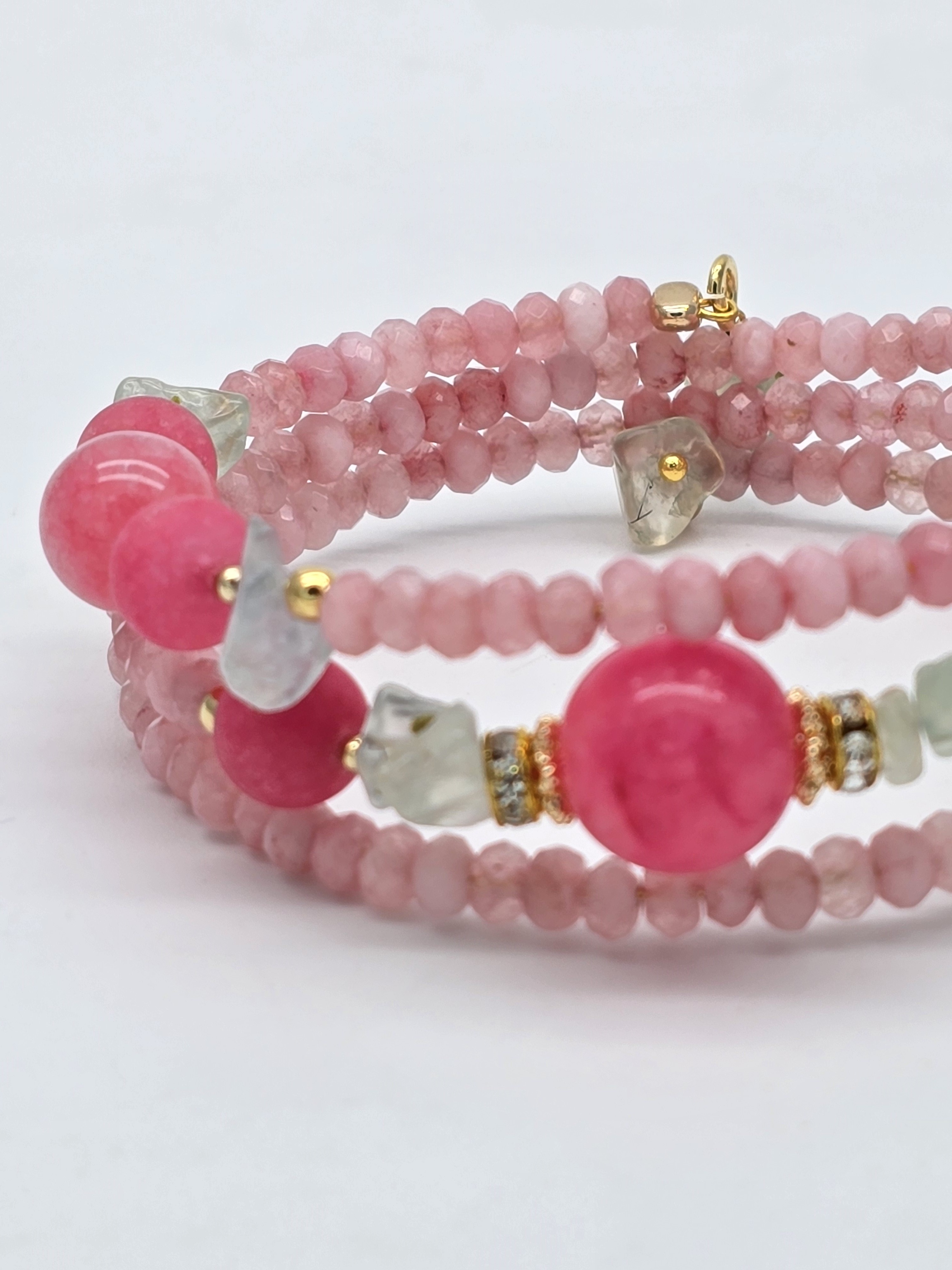 Кварц клубничный, кварц мятный, хризопраз, розовый кварц, агат, ювелирный сплав. Гальваническое покрытие: золото.