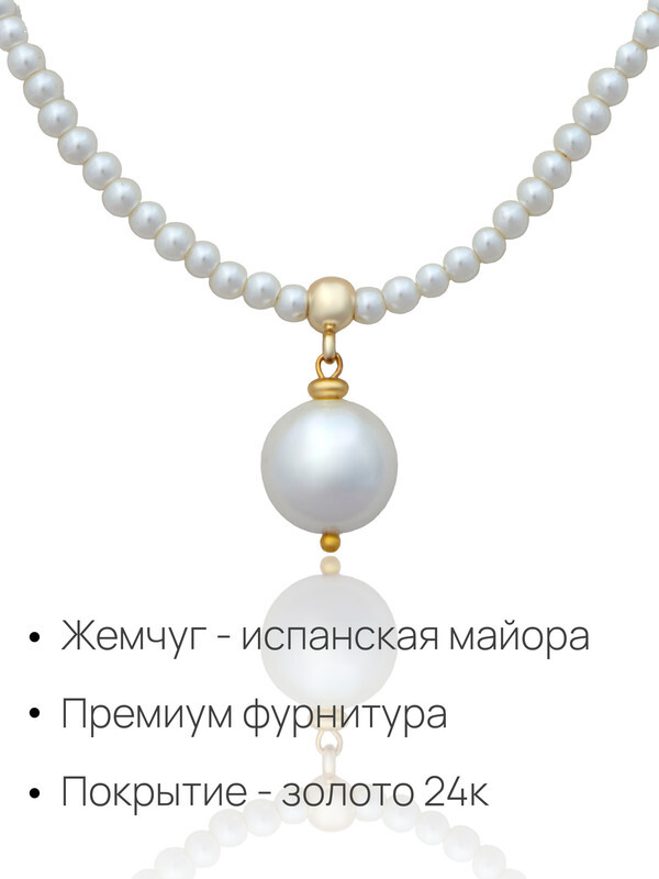 Размер: Длина колье 42 - 47 см. Жемчуг Майорка 3-12 мм.