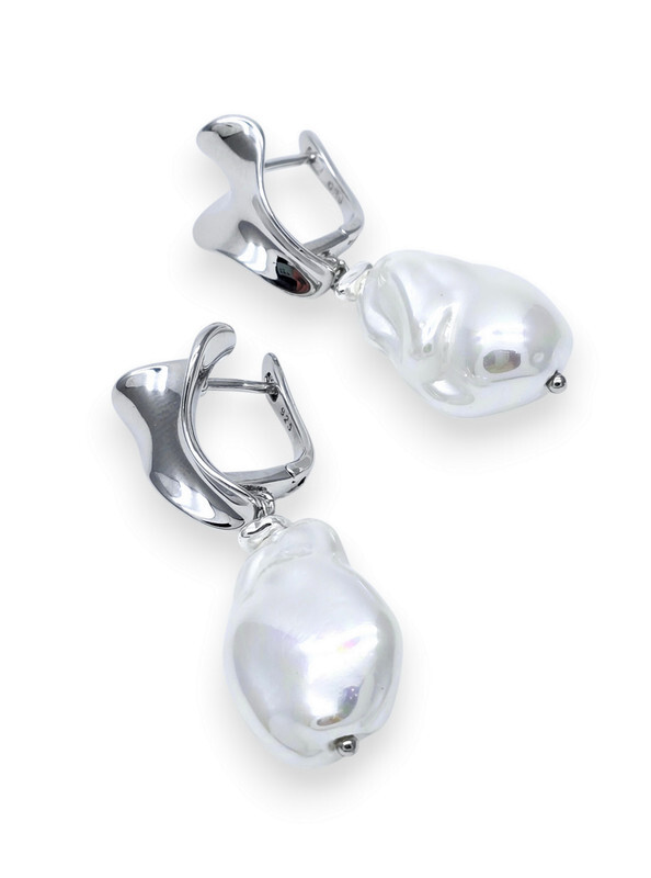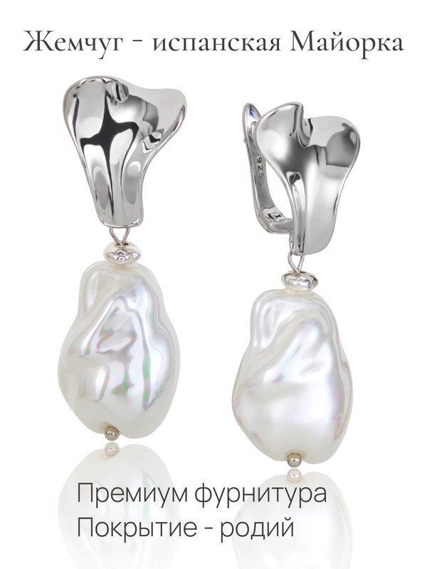 Размер: Длина серег с учетом 4,5 см. Жемчуг Майорка барочный 15*22 мм.