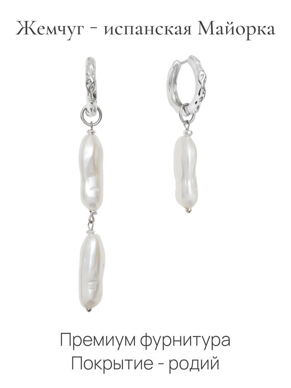 Жемчуг Майорка барочный, ювелирный сплав. Гальваническое покрытие: родий.