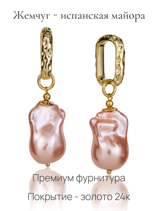 Размер: Длина серег с учетом швенз 4,8 см. Жемчуг майорка 15*22 мм.