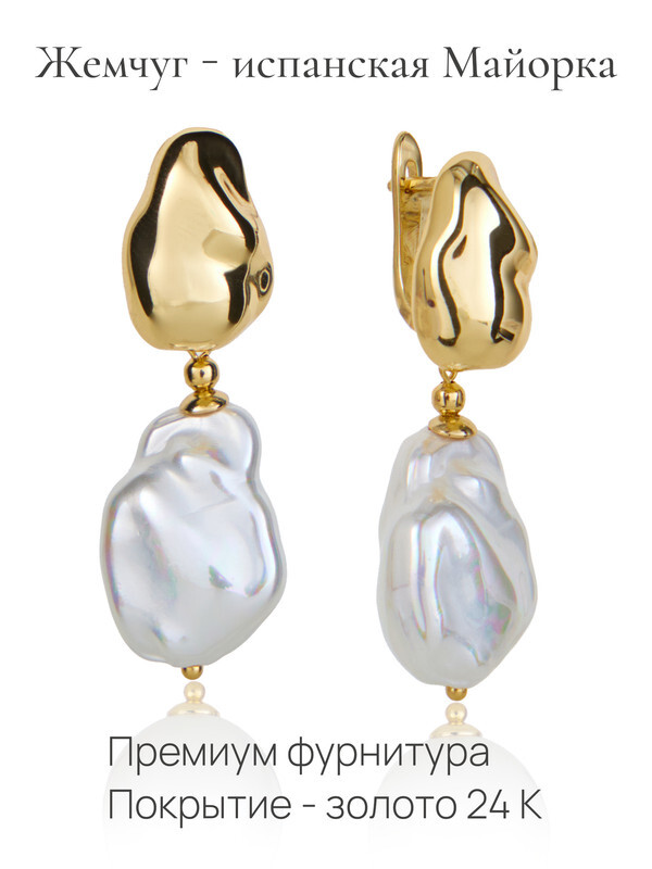 Размер: Длина серег с учетом швенз 4,4 см. Жемчуг Майорка 15*23 мм.