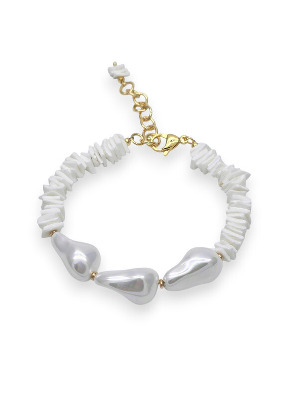 Размер: Длина браслета 19 - 24 см. Жемчуг Майорка 13*21 мм. ракушки 10 мм.