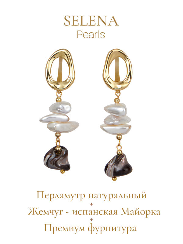 Перламутр натуралный, жемчуг Майорка, ювелирный сплав. Гальваническое покрытие: золото.