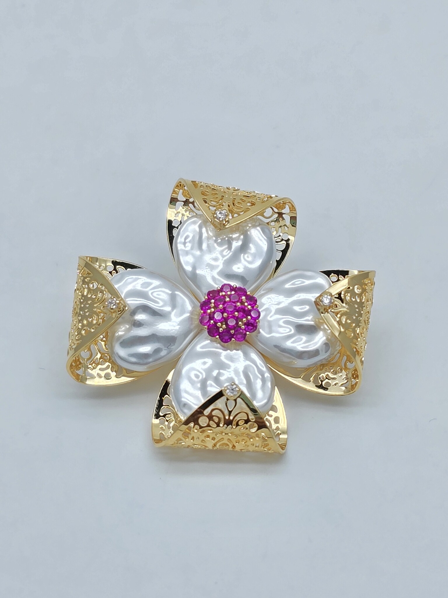 Жемчуг Майорка барочный, цирконы, ювелирный сплав. Гальваническое покрытие: золото.