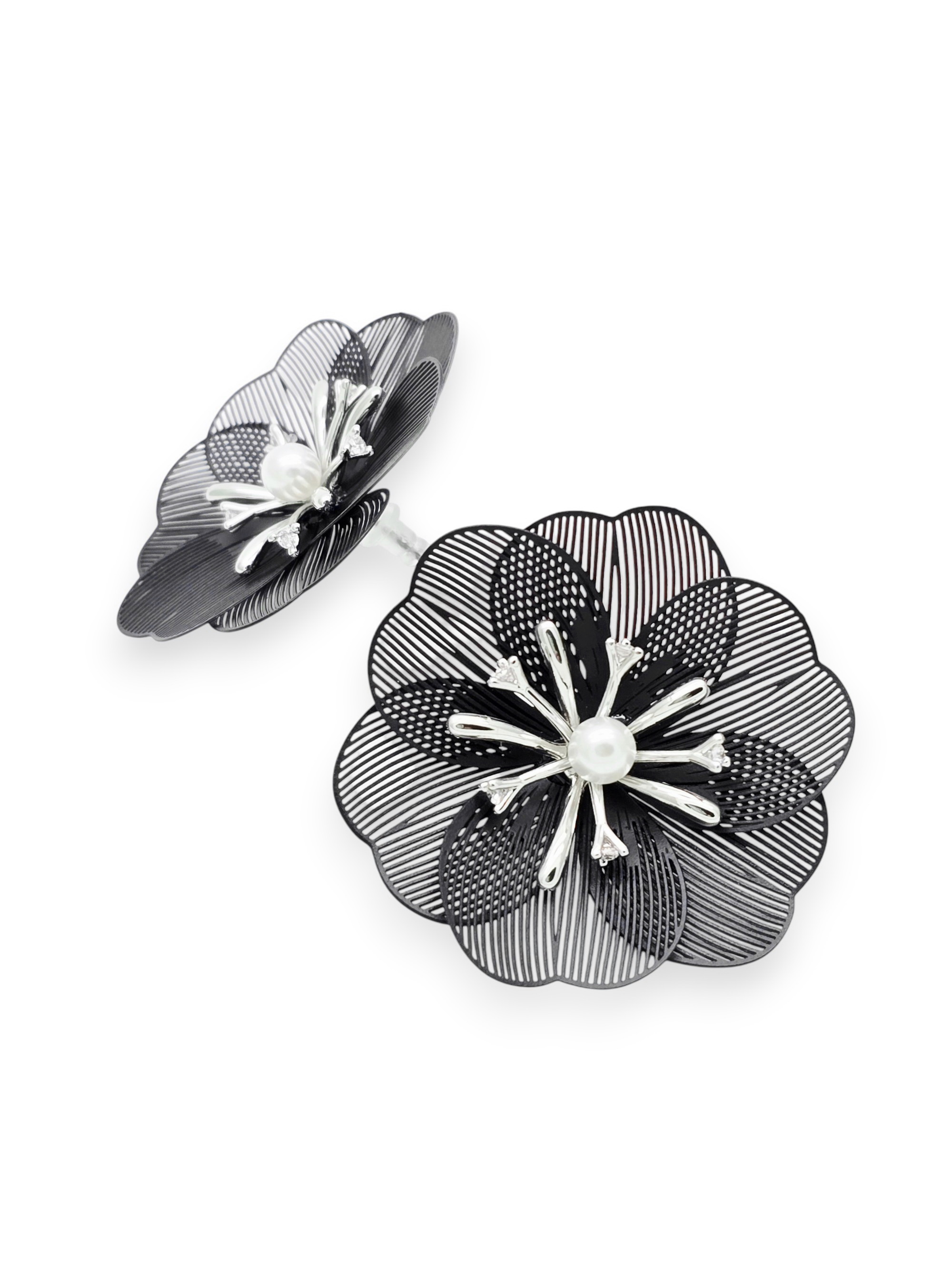 Жемчуг Майорка, цирконы, ювелирный сплав. Гальваническое покрытие: родий.