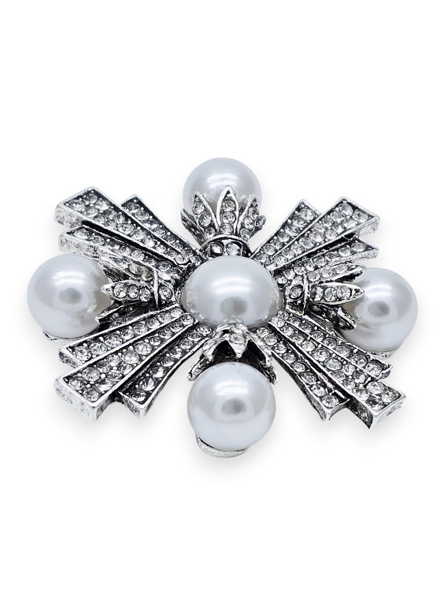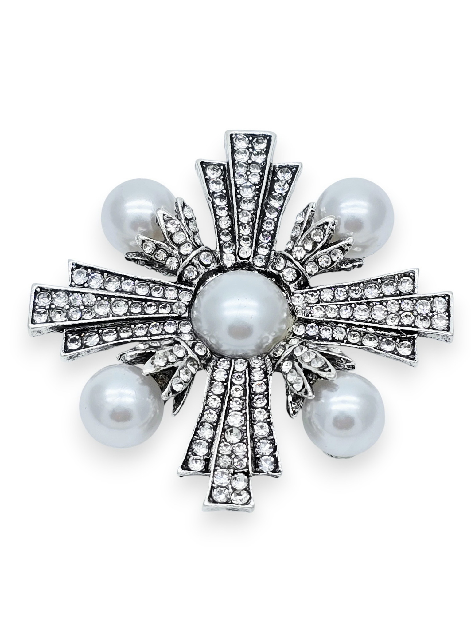 Жемчуг Майорка, кристаллы Preciosa, ювелирный сплав. Гальваническое покрытие: родий.