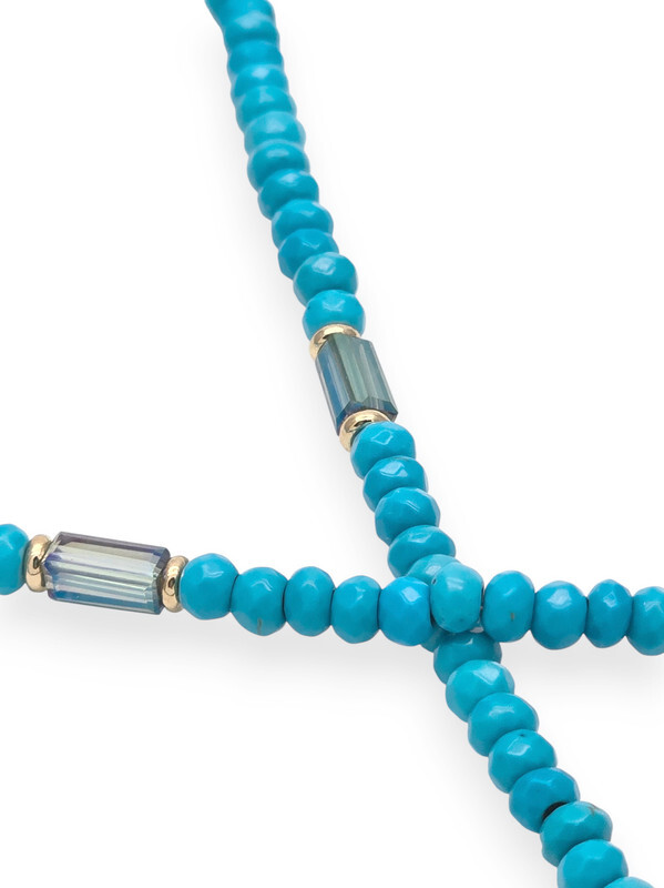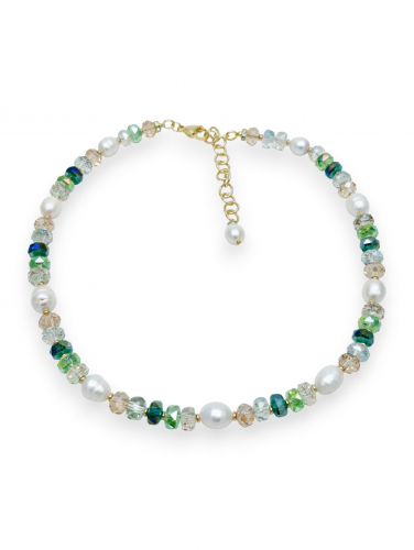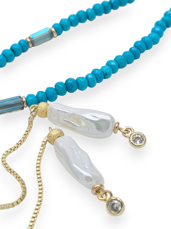 Жемчуг Майорка, турквенит, хрусталь, ювелирный сплав. Гальваническое покрытие: золото.