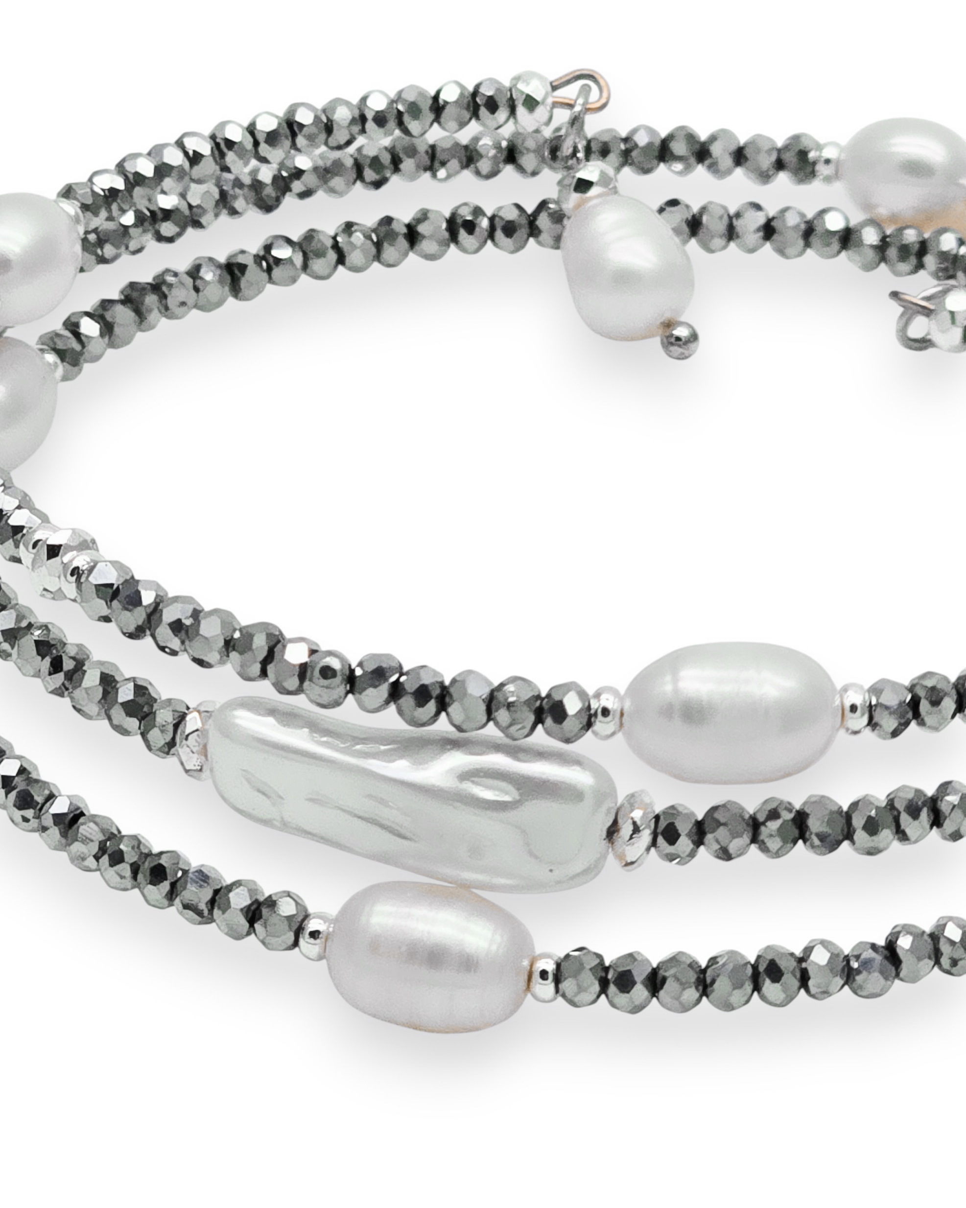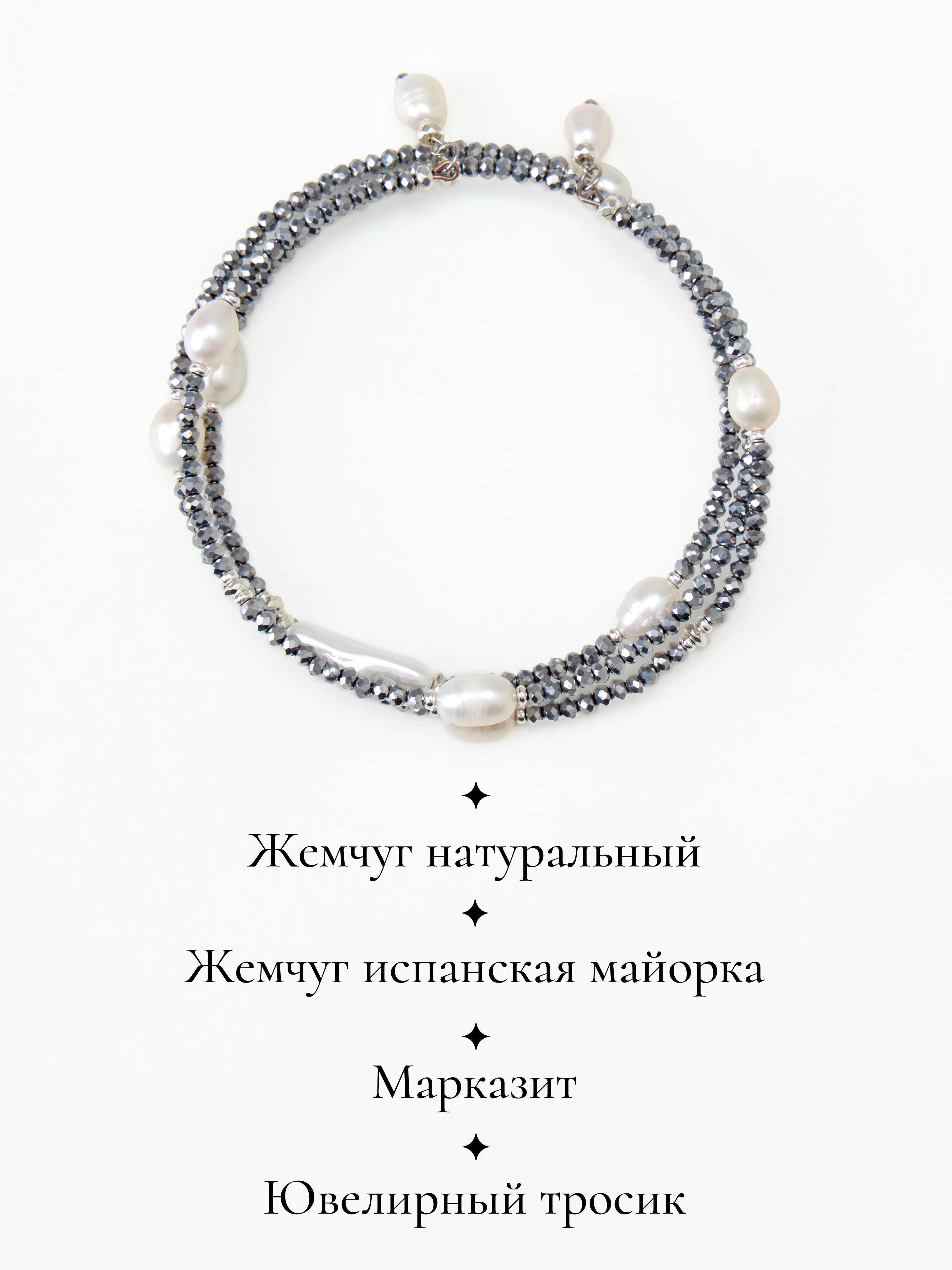 Размер: Длина браслета регулируется по ширине запястья, диаметр 6 см, ширина 15 мм. Жемчуг 6*8 мм, 6*17 мм. марказит 2 мм.