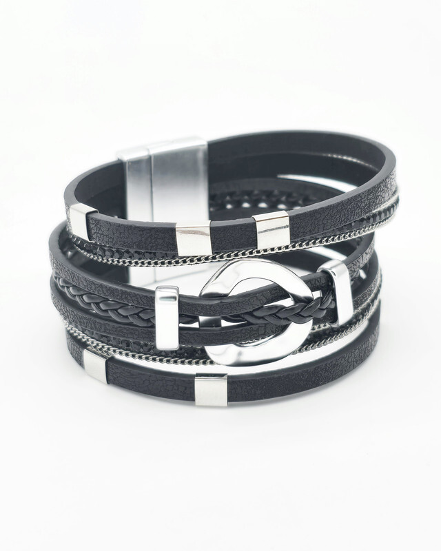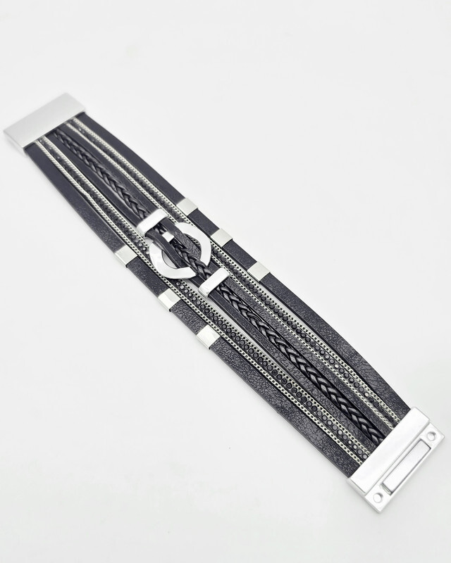 Искусственная кожа, ювелирный сплав. Гальваническое покрытие: родий.
