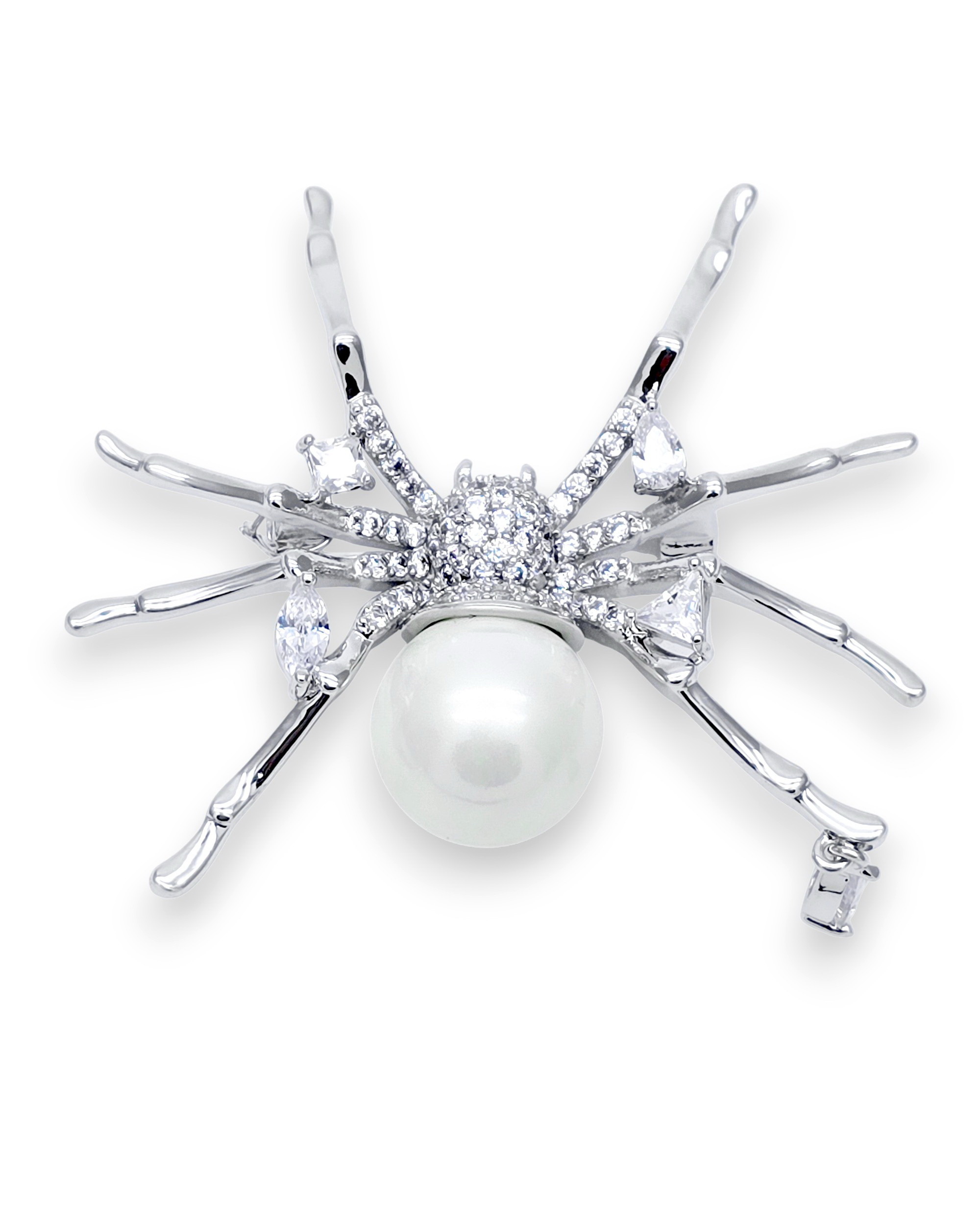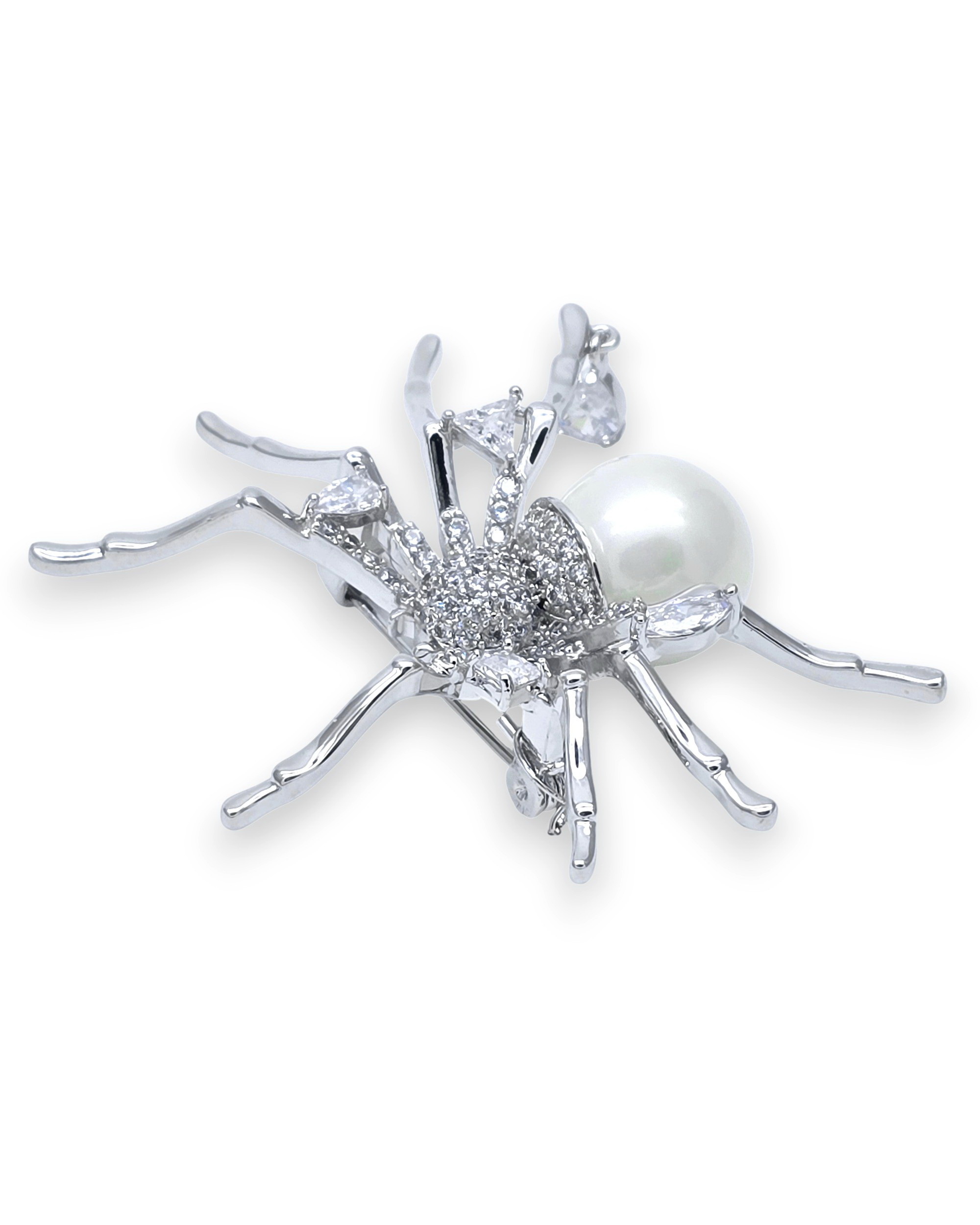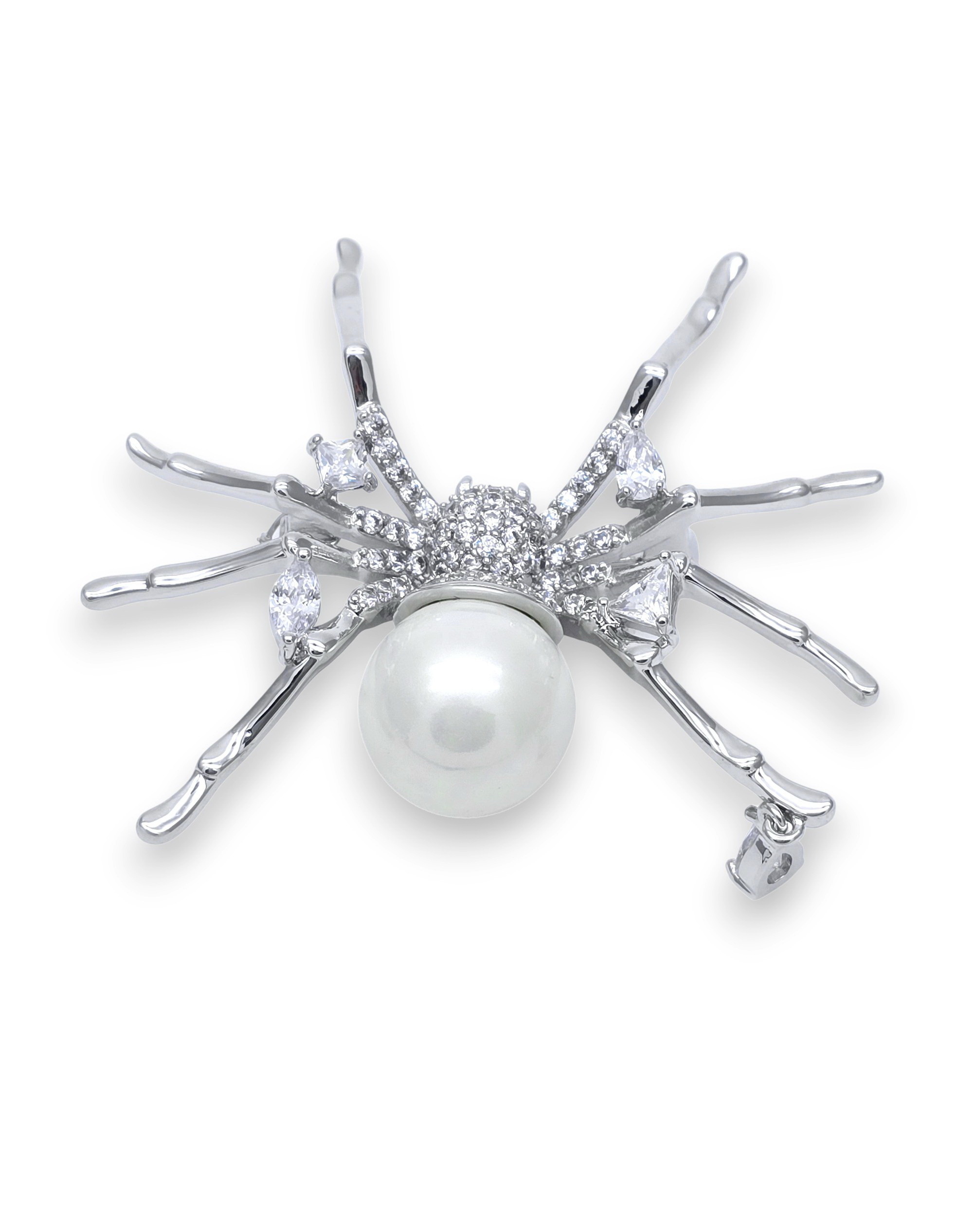Жемчуг Майорка , цирконы, ювелирный сплав. Гальваническое покрытие: родий.