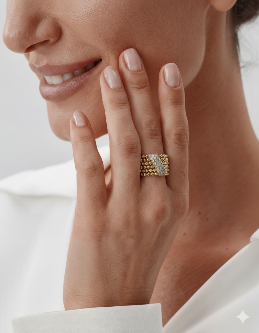Размер: Размер кольца регулируется, ширина 1,3 см.