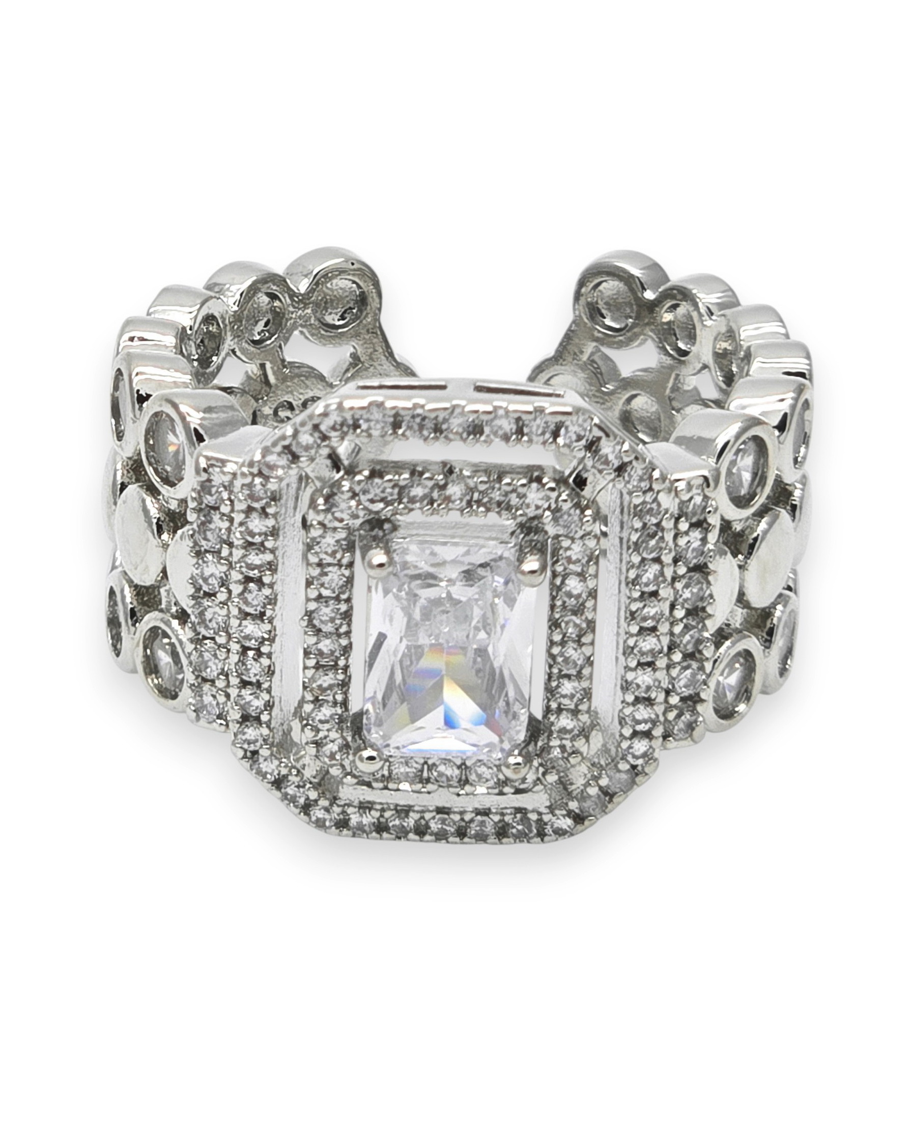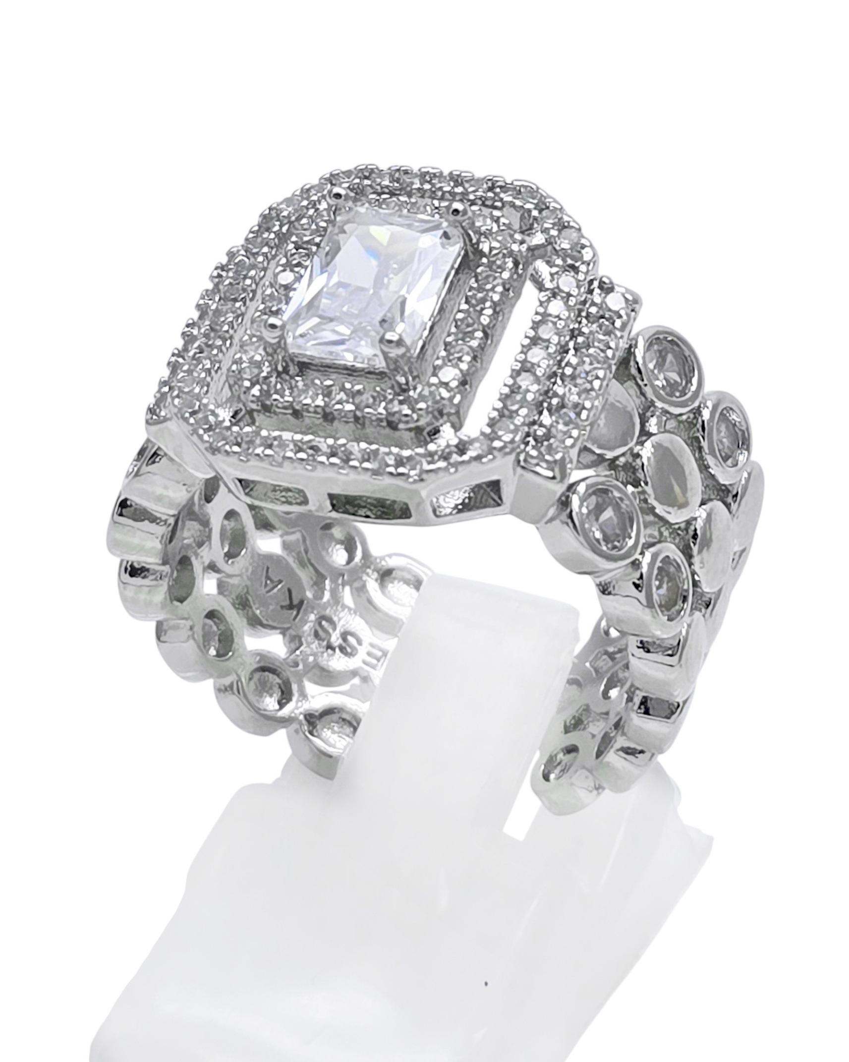 Цирконы, ювелирный сплав. Гальваническое покрытие: родий.