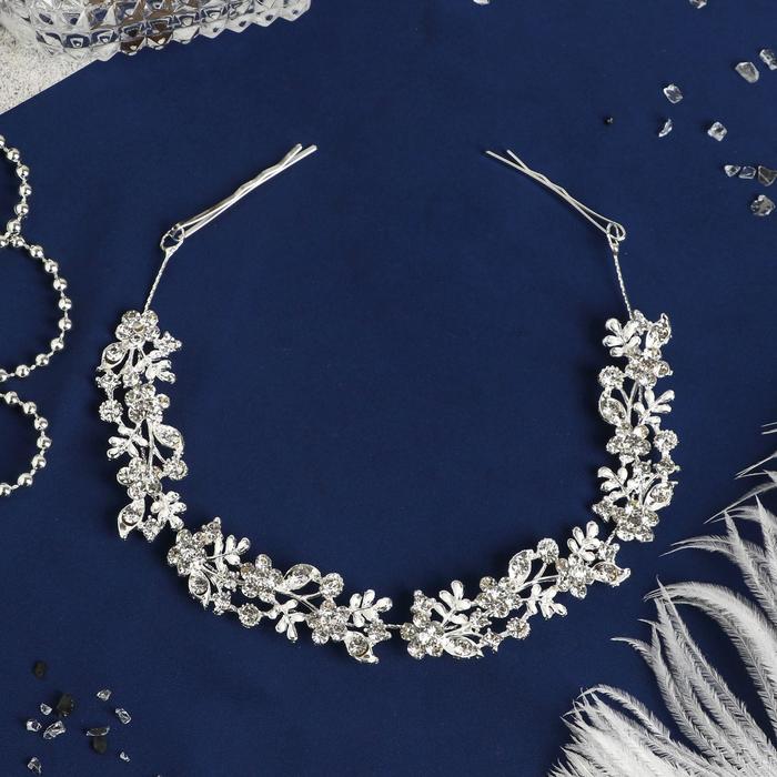Аксессуар для волос «Анжелика», цветочки и листики, 21 см, серебро