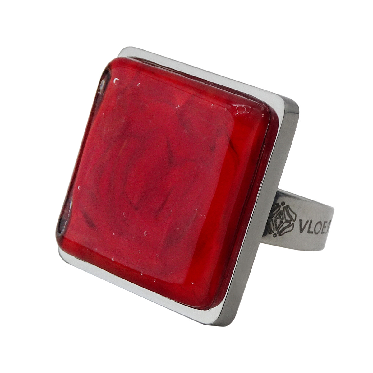 Кольцо изготовлено из муранского стекла и гипоаллергенной ювелирной стали, что очень важно для людей с чувствительной кожей. Металл не темнеет и не подвергается воздействиям окружающей среды, надолго обеспечивая красивый внешний вид изделия. Размер стеклянного элемента - 2,3x2,3 см. Кольцо безразмерное, регулируется с 16 до 19 размера. Вес - 5  гр.
