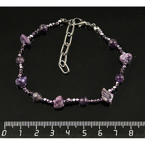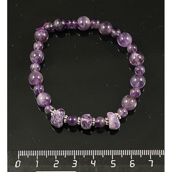Браслет из чароита (галтовка), аметиста (шарик 6 и 8мм) на резинке