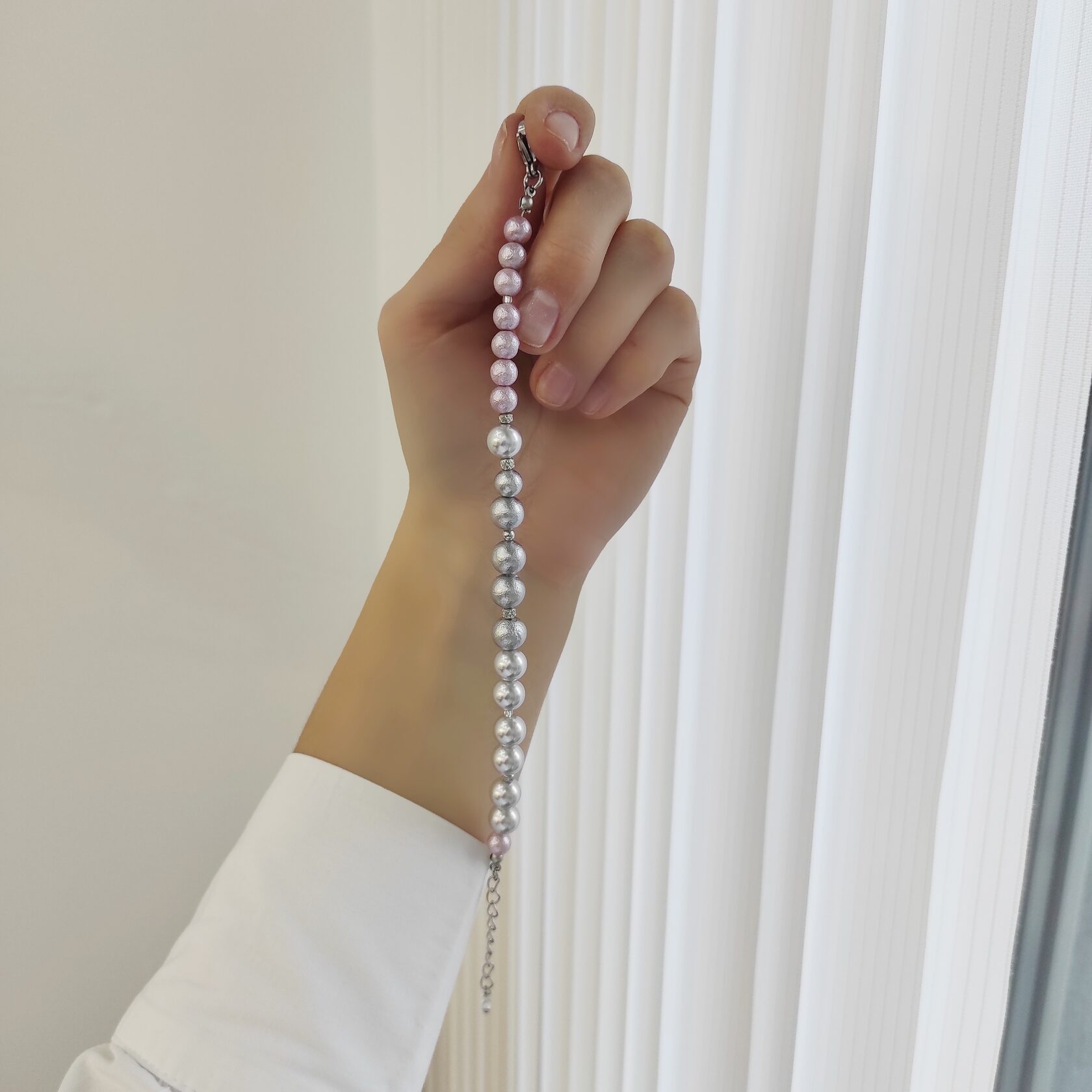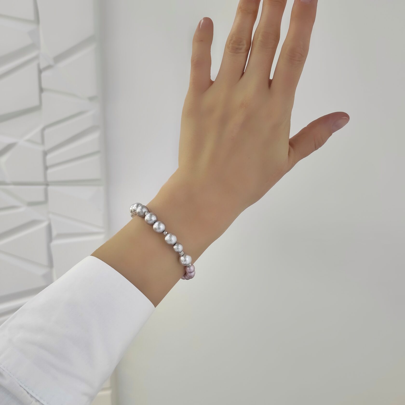 Браслет из хлопкового жемчуга серый + пастельно-розовый цвета