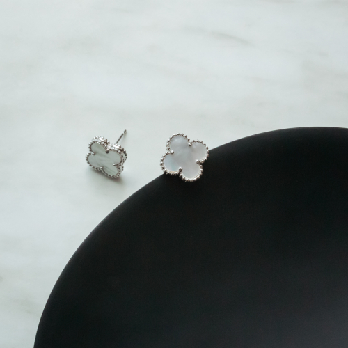 Ювелирный сплав, родиевое покрытие, натуральный перламутр с двух сторон "клевера".