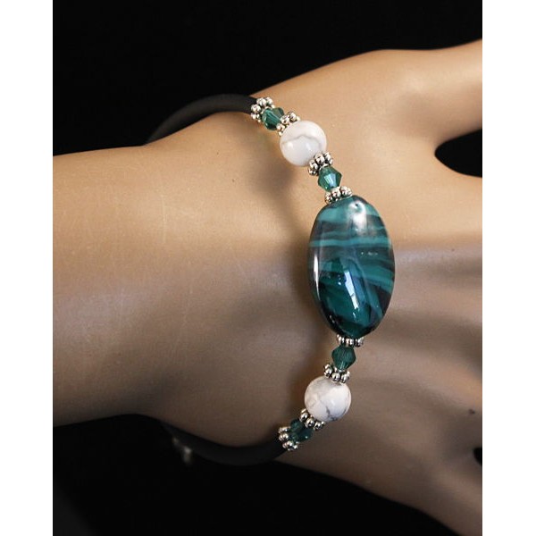 Браслет на струнке из каулита и зеленого муранского стекла