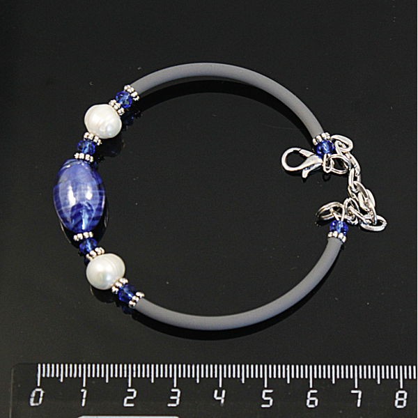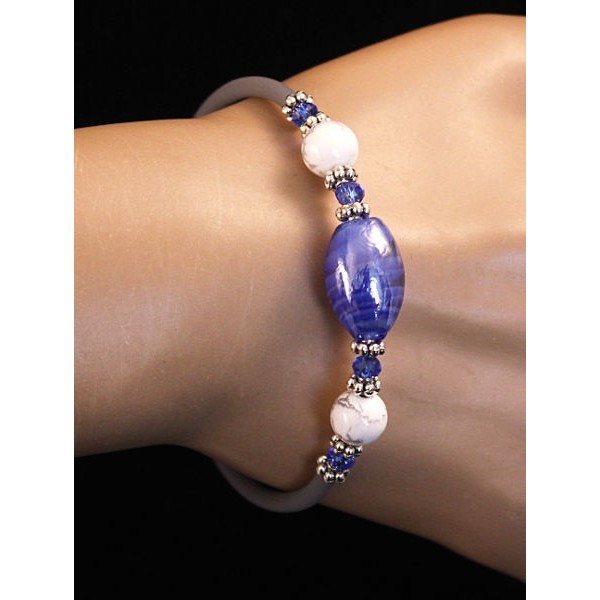 Браслет на струнке из жемчуга белого и синего муранского стекла