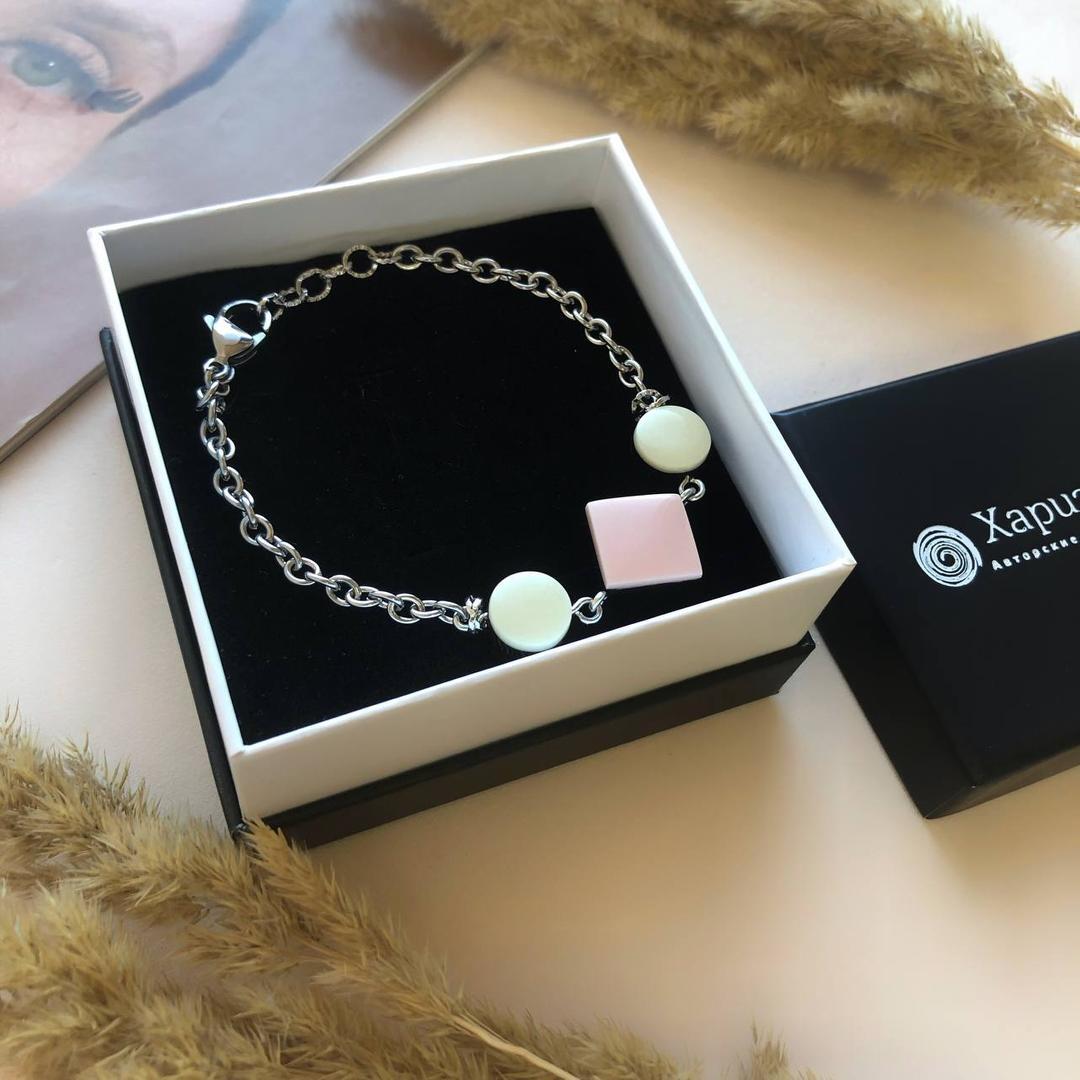 Браслет приглушенно-розовый + цвет слоновой кости