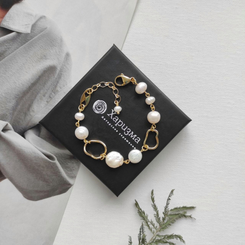Браслет с барочным жемчугом в фурнитуре из стали Уценка