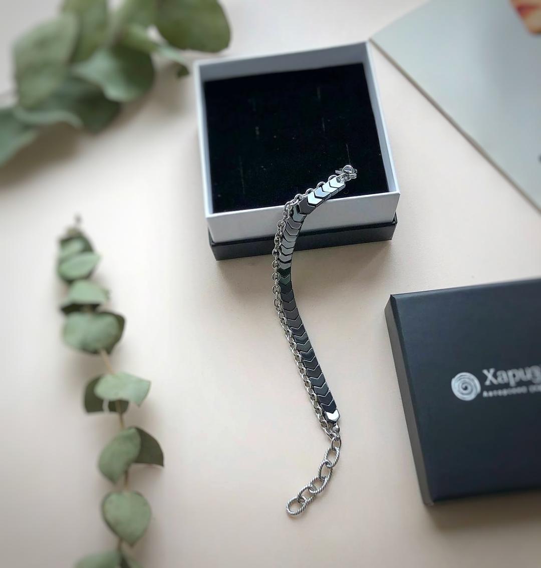 Браслет из гематита интересной формы с цепочкой