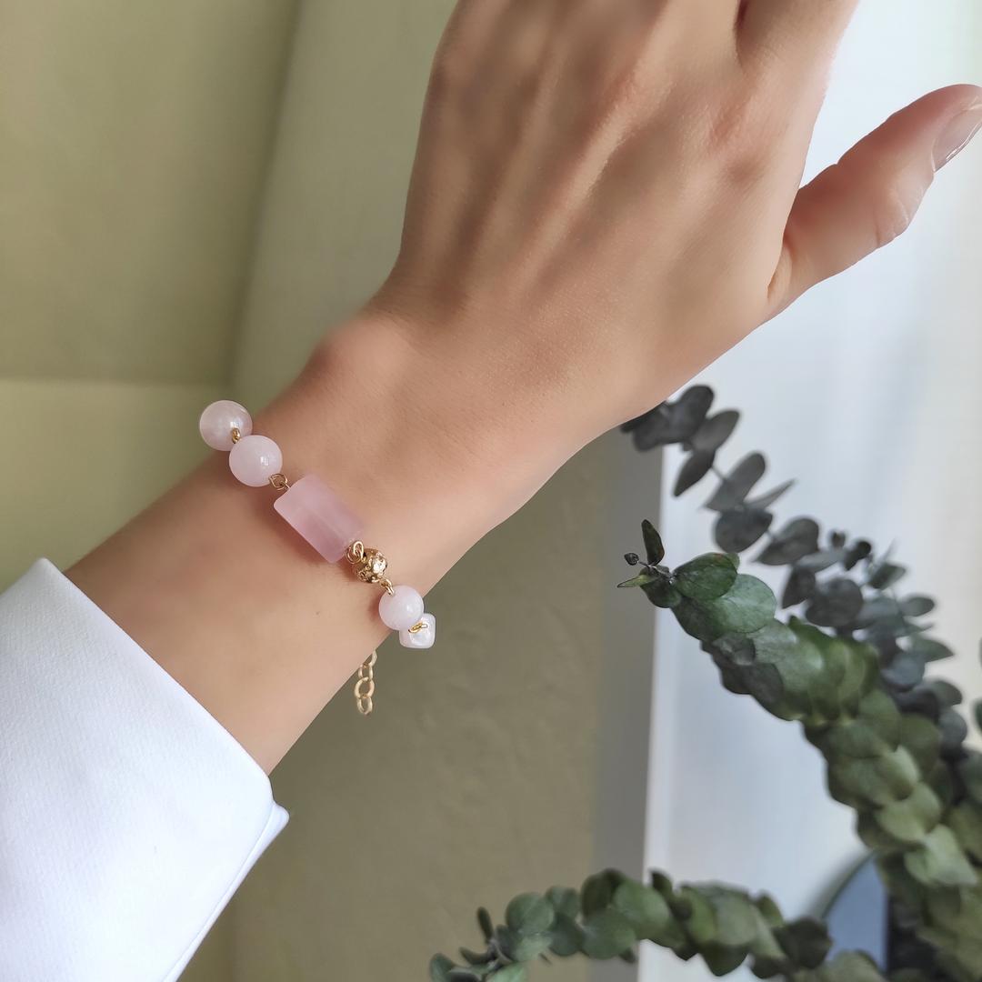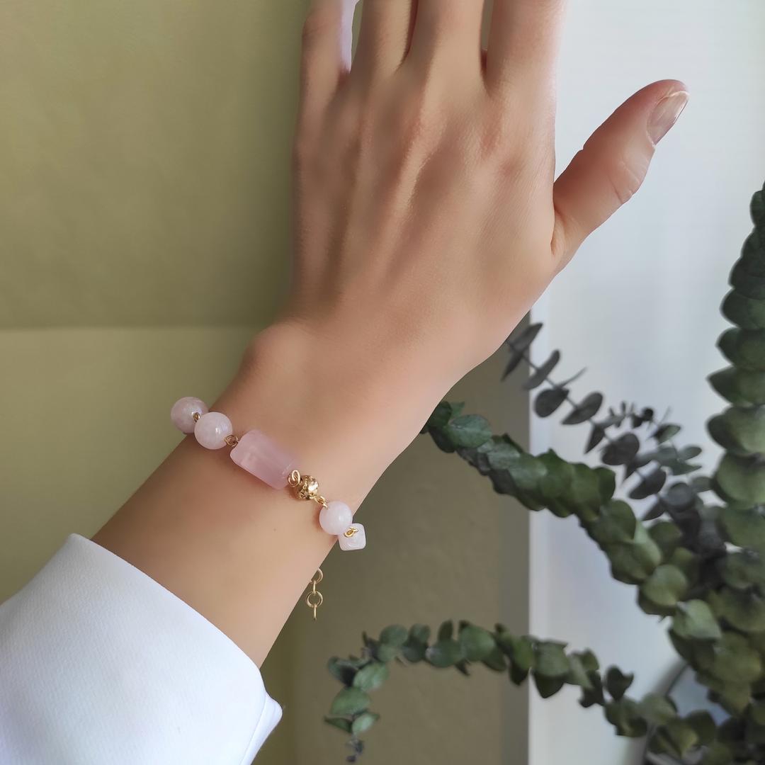 Браслет из натурального розового кварца высокого качества.