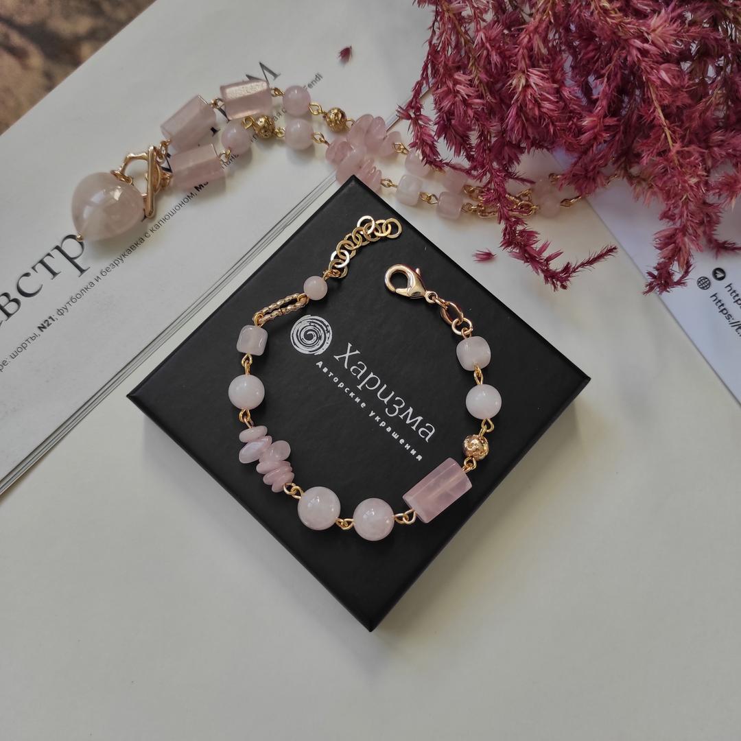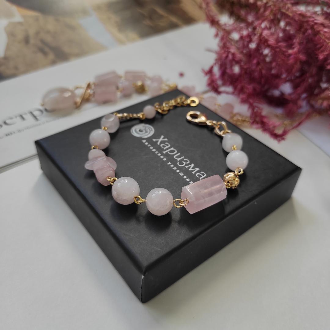 Браслет с розовым кварцем в позолоченой фурнитуре