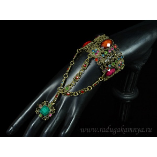 Браслет-слейв из ювелирного сплава с цирконами и муранским стеклом "Овал" цвет ассорти.
