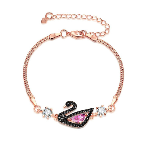 Браслет Лебедь черный с белыми камнями Цвет золото Арт. Б-82