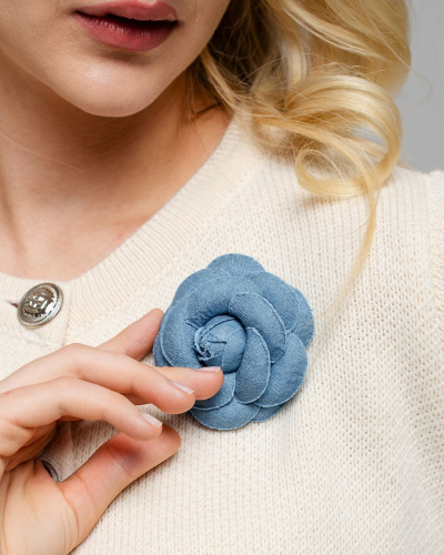 Инспирированная классикой и изысканностью камелии в стиле Шанель, наша джинсовая брошка сочетает в себе вечную красоту и современный трендовый материал. Цветок из денима станет прекрасным дополнением как к повседневному наряду, так и к вечернему образу, придавая ему нотку роскоши и утонченности. А если усыпать брошками целиком весь пиджак или джепер - у вас получится уникальная кастомная вещь.